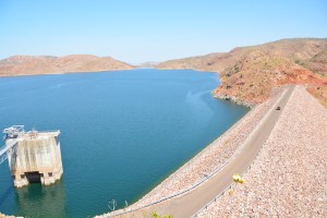Right across the border in WA we came to one of the most dramatic engineering feats in Australia over the last 50 years. In the early 1970’s engineers dammed a gully of the Ord River which was only 350 metres wide and after only two wet seasons created a lake over 1,000 square kilometres in size that fundamentally changed life in the eastern Kimberley region. In one dramatic step Lake Argyle was formed and the region now had unlimited water year round for irrigation and farming, for pastoral activities, for the peoplein nearby townships, for recreational use and for tourism. In conjunction with the nearby Argyle diamond mines, which produces an astonishing third of all diamonds in the world including the unique pink diamond, this became a mini-boom area.