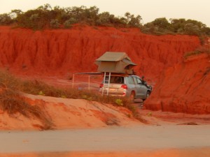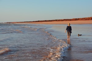 Broome sits at the base of the large Dampier Peninsula that struts out into the ocean and forms a large northern extension to the mainland. The peninsula is primarily Aboriginal land but visitors have access to all parts with the right permits. We travelled on a dirt track up the western coast to a beautiful little bush camp on the beach which we named Red Cliffs for the long majestic dark orangey red cliffs that lined the faultless beaches. We strolled the beach that night, probably the only ones within ten kilometres or so, and loved every bit of it. Another perfect ten campsite.