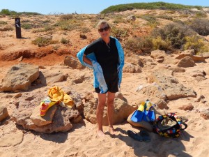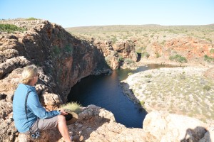 We went in the water in four different places but the wind was up and the water was a bit cold so by early afternoon we headed south to Yardie Creek and Yardie Gorge. This gorge is the only inland attraction of the national park and provided spectacular views of the water carving its way through the soft red sandstone as we walked along the gorge’s rim. We then let the air out of our tyres, crossed Yardie Creek and headed for our campsite amongst the sand dunes.