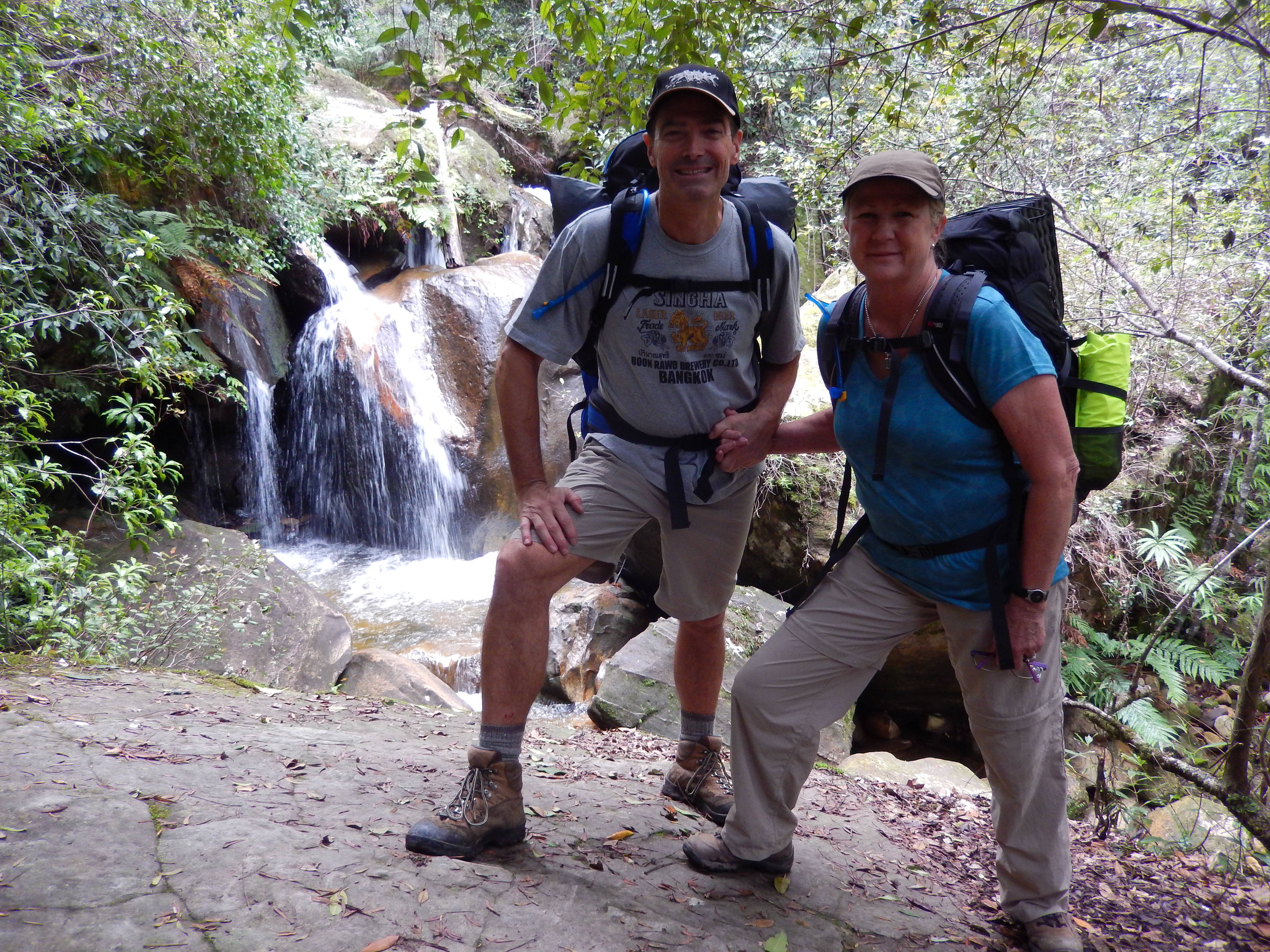 The journey the next day was a cruel mixture of stunning scenery and back-breaking climbing, marked by dogged determination and broken with frequent stops, water and chocolates. We walked up a steep shaded canyon with a beautiful little creek bouncing down it; all around us were rocks and fallen trees covered in a carpet of green moss, lichen and vines. Mushrooms, toadstools and a dazzling array of fungus sprouted up everywhere while we crossed back and forth across the creek, sometimes jumping from slippery rock to wobbly rock.