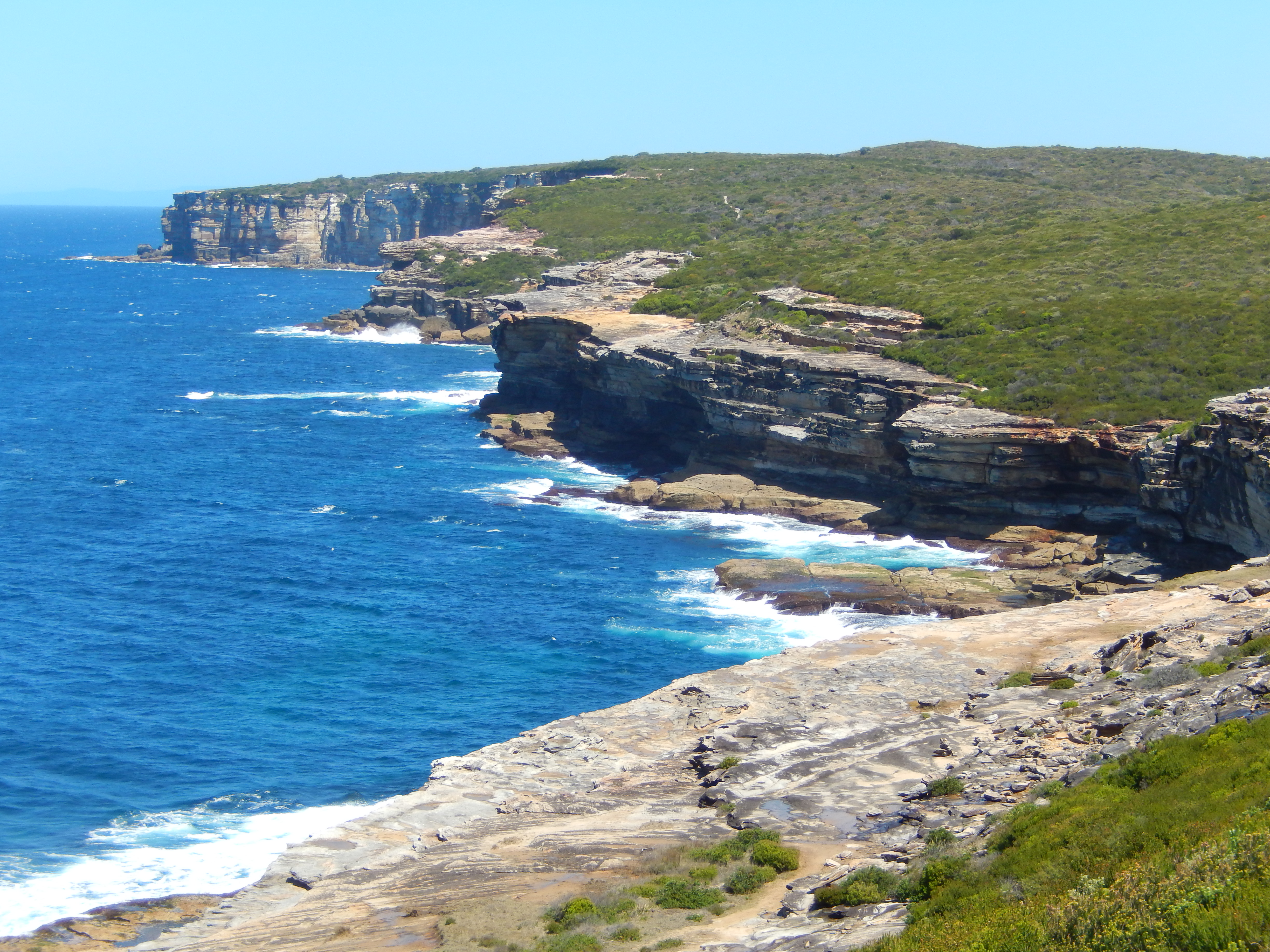 Without quite the same free time but keen to get out in the bush, Julie and I jumped at a chance to spend a recent sunny Sunday in the park and drove to the coast track trailhead at Bundeena. From there we followed the coast south, cutting through the thick coastal heathland and hugging the steep cliffs that separated continent from ocean. The day was pleasantly warm but not hot, breezy but not windy and cloudless to perfection.