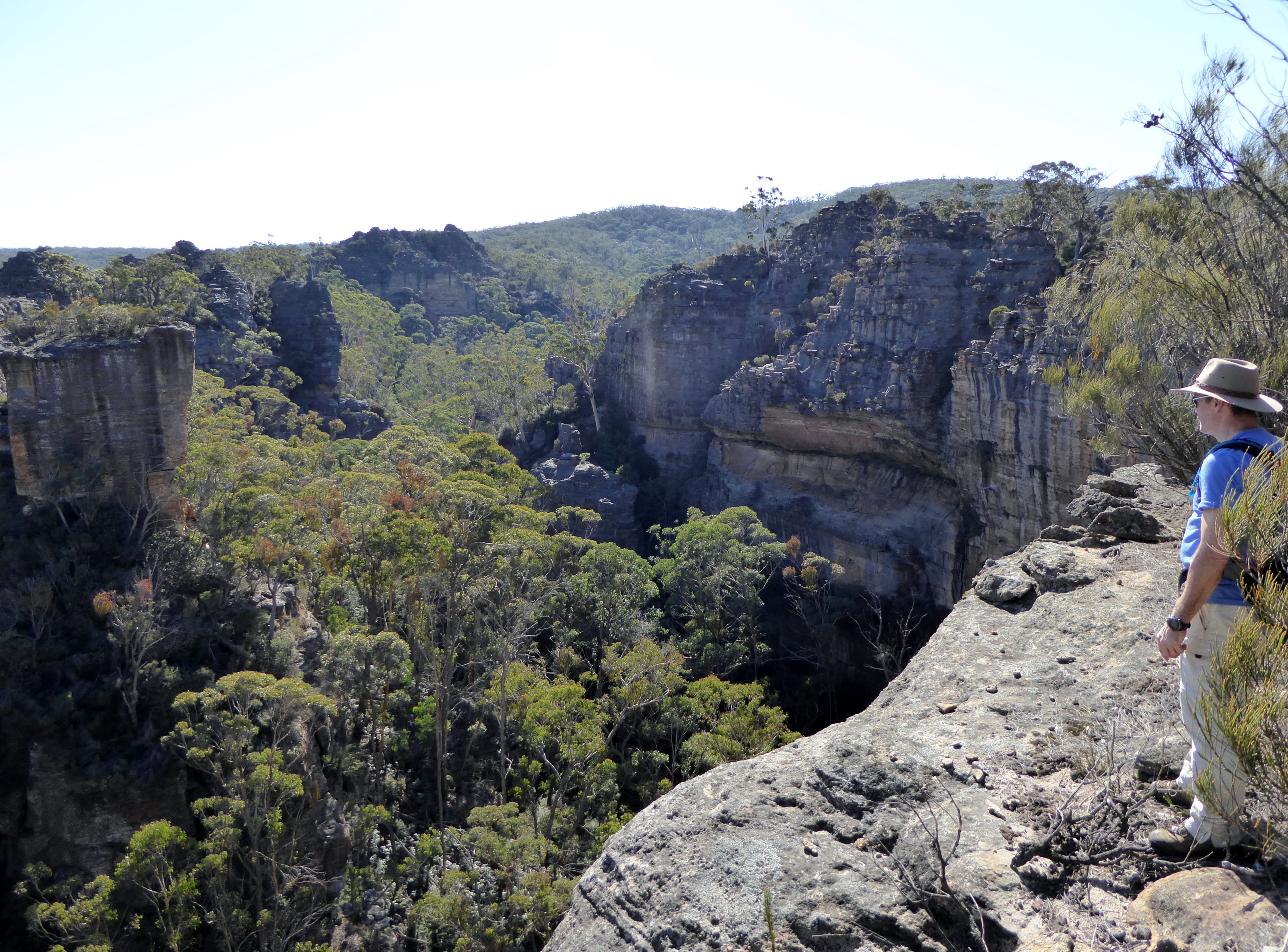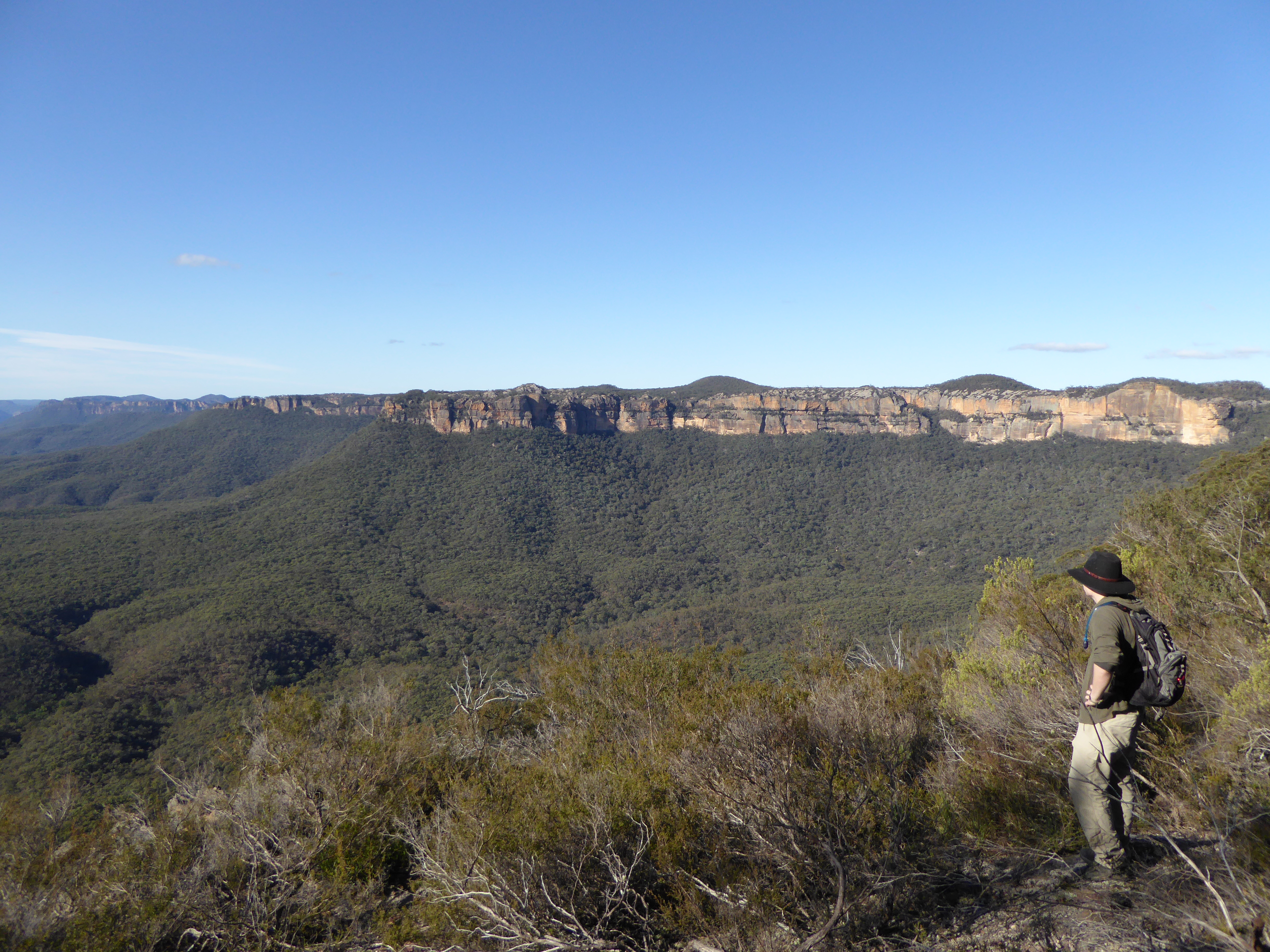 One of our targets for the weekend – to find the hidden Wolgan Falls, seen here from behind the top of it.