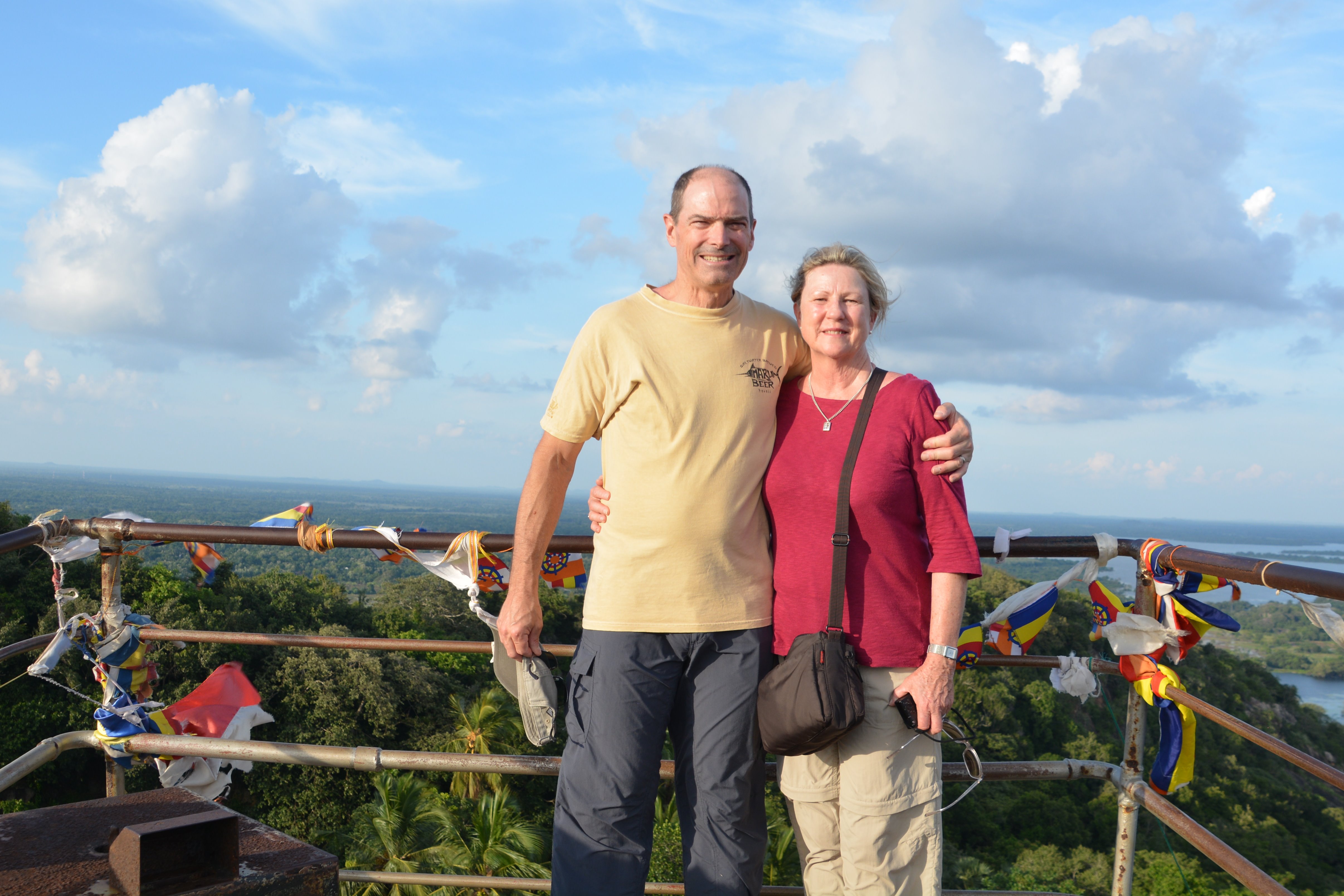 From here we could see the jungle carpet below us, the flooded rice paddies and the smoke from various little fires while listening to the monkeys howling from the trees below and the occasional Hornbill calling out. A huge family of Sri Lankans were just leaving the little flat summit when we arrived so we had this magnificent scene to ourselves. This was easily the highlight of Mihintale for us.