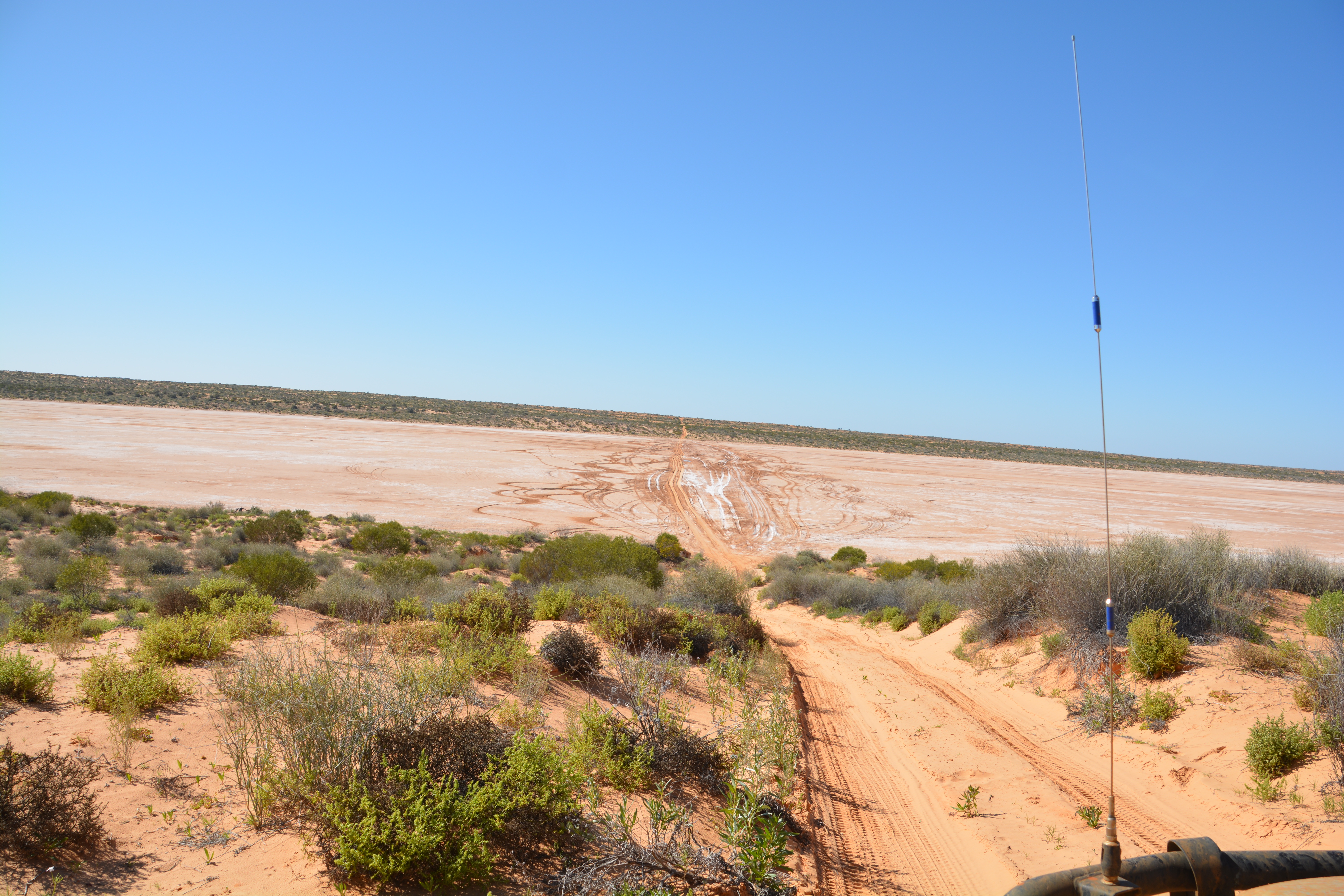 We also came across more and more of these dry salt lakes lying between the sand dunes. They were fun to drive across but often presented challenges with their deep ruts and slippery muddy sections. Some of them were so dodgy to cross that numerous previous vehicles had driven around their edge to avoid any risk of getting bogged and we wisely followed suit.