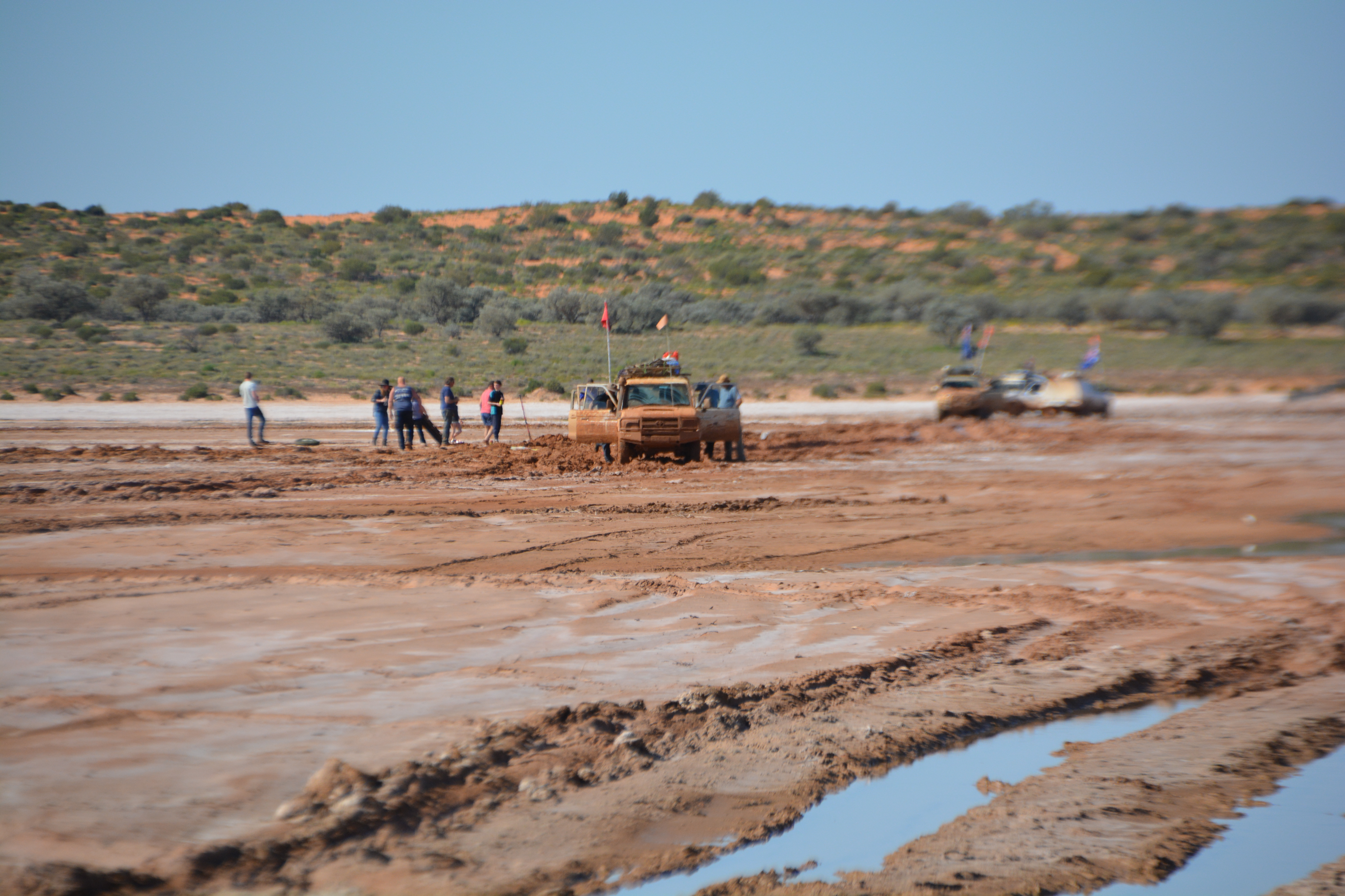 After a pat on the back from the relieved driver we said our good byes, people and vehicle covered in mud, and power-drove ourselves back to the lake’s edge, bouncing and sliding so much to get out of this mess the truck slid hard sideways to a stop at one stage. We packed up and left as quickly as possible for fear this guy would get stuck again and need more help.