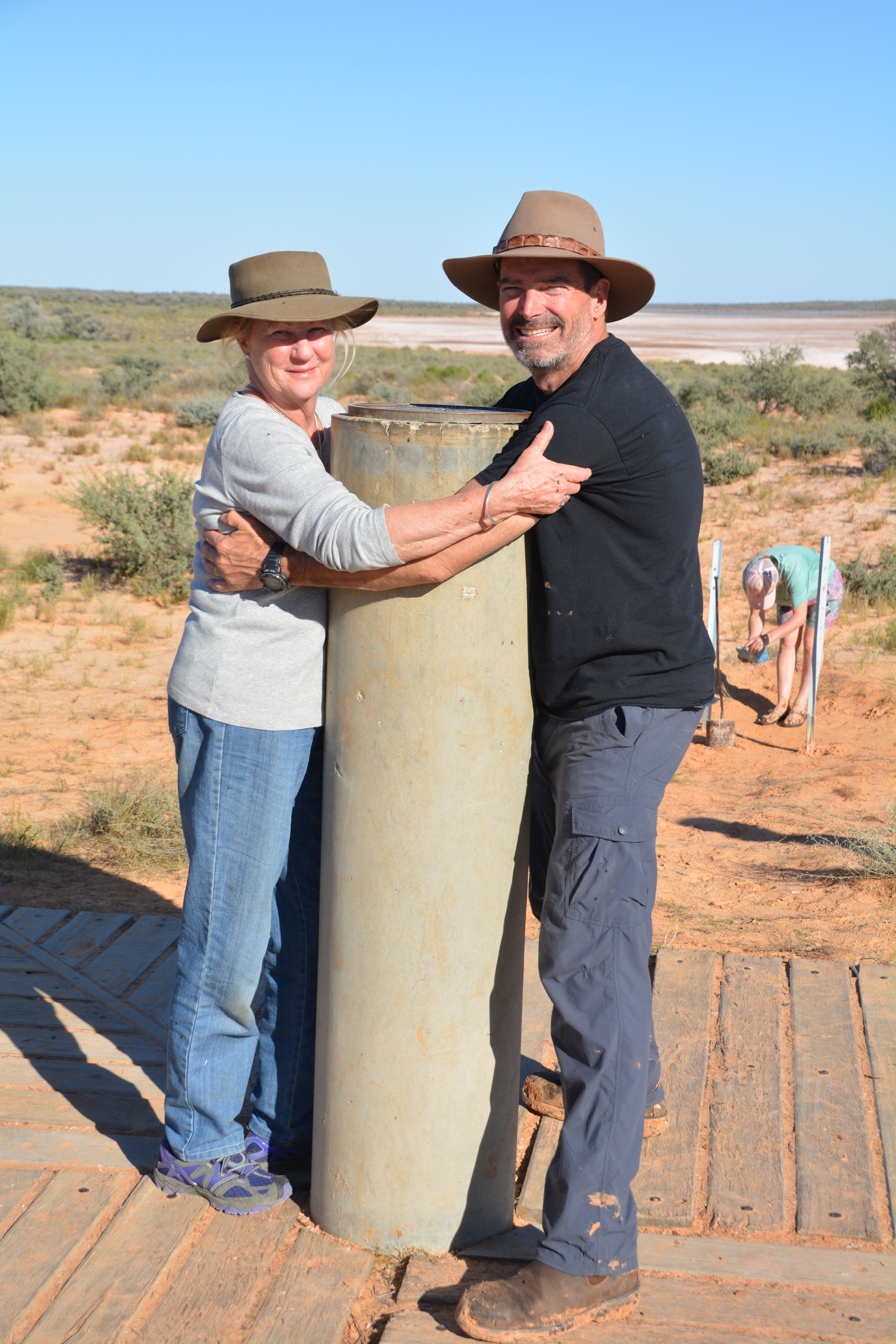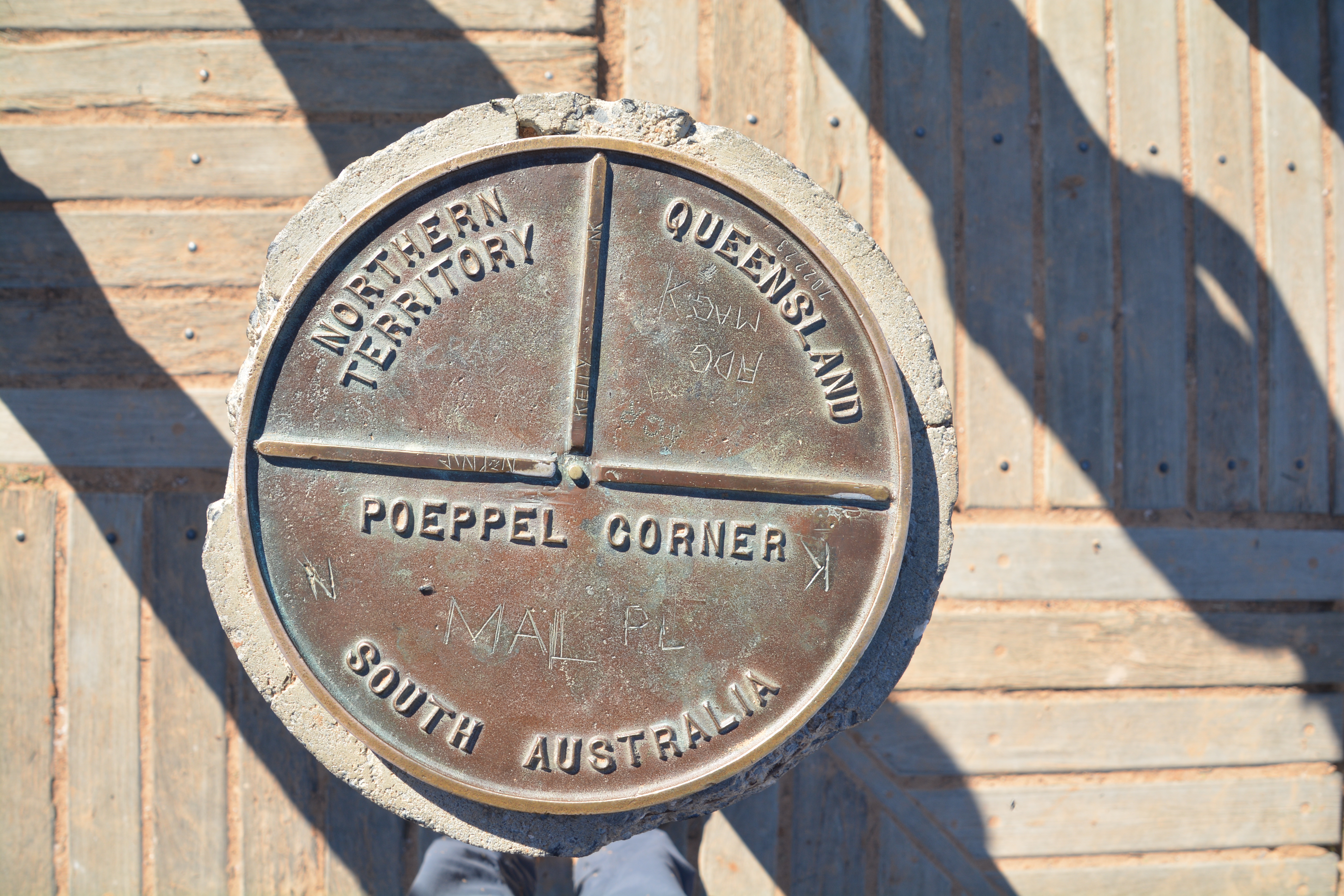 The detour around Poeppel Lake was 18 km long but it gave us a different perspective of this vast dry lake bed and the challenges of Augustus Poeppel who came through here in the mid 1880’s to survey for the first time the exact spot where the boundaries of South Australia, Queensland and the Northern Territory met. He measured the spot to be in the middle of the lake and it wasn’t until many years later that more accurate equipment moved the spot up on the slope above the lake.