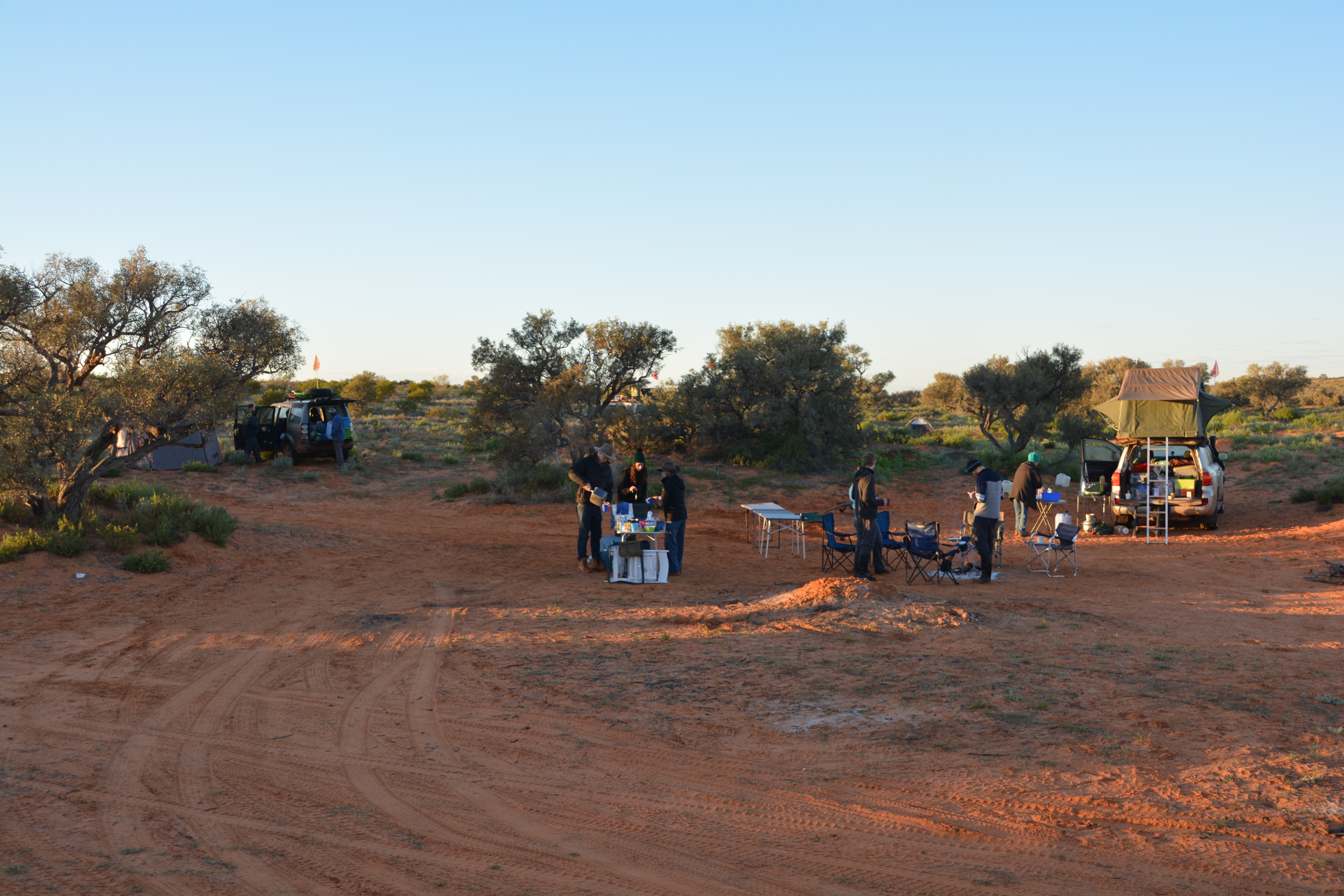 The day had started much better under beautiful blue skies but as we crawled out of bed the thermometer was only nudging 3 degrees and there was a heavy dew across all our gear. The morning was declared a ‘lady’s drive’ and after we broke camp we headed further east on the French Line towards Poeppel Corner which marks the point where the boundaries of South Australia, Queensland and the Northern Territory meet. Some of the sand dunes were fairly steep on this section and we dropped the air pressure to make it a bit easier.