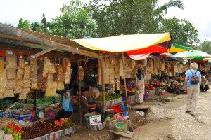 When the road popped out onto the flat land on the other side of the mountains the whole scene changed. Almost immediately we started driving through unending fields of oil palm, the massive huge palm tree from which they harvest palm oil. We’ve all heard about how the Malaysians (and Indonesians) are bull dozing their virgin rainforests to meet the ravenous needs of modern society and all the products that use palm oil. This was first class evidence of same, miles and miles of oil palm plantations, rolling over the countryside like a thick green blanket.