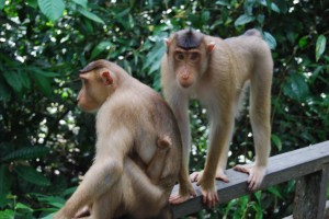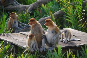After dining out on these orange guys for the longest time we headed down the road to the Proboscis Monkey Sanctuary, set in the middle of a big intimidating oil palm plantation. These colourful monkeys are the ones with the huge noses, I mean huge noses, making them both ugly and strangely cute.