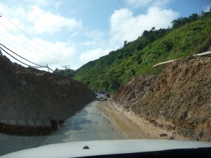 The road was in poor nick with numerous smaller mudslides and many uneven surfaces where previous slides had caused damage which had been poorly repaired. But the wild road also had some beautiful scenery, high mountains, deep valleys, heavy green foliage everywhere, some small settlements and very little traffic to distract us.