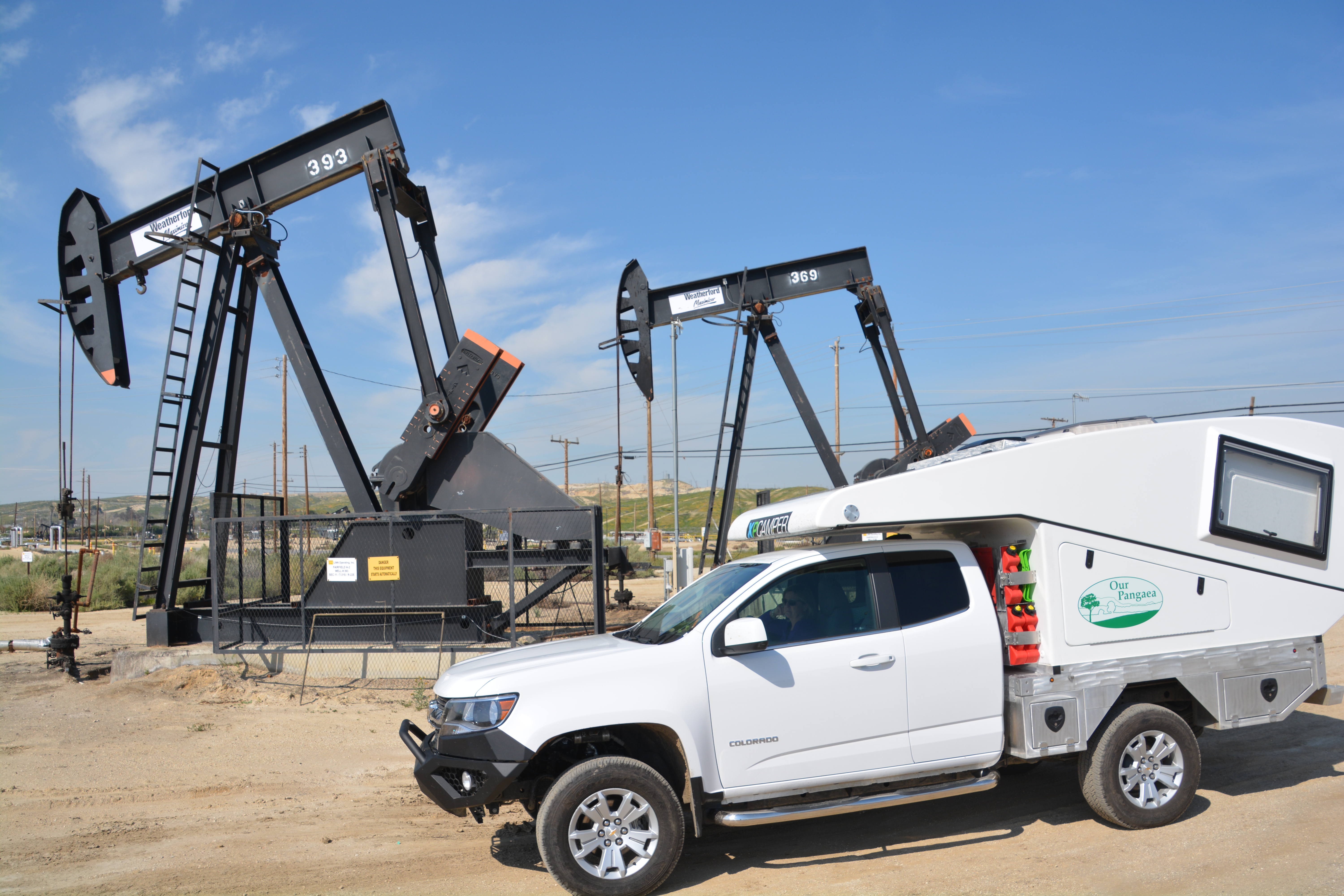 We wanted to stay off the busy Interstate freeways that are dominated by huge trucks and fast cars, neither of which define us, and stay on the smaller rural roads that provide a closer and more detailed look at the local scene. The beautiful green rolling hills and vibrant spring flowers that dominate the mountains of central California give way to unending fields of vineyards and almond and pistachio orchards before being overtaken by vast sprawling fields of bobbing oil drills.