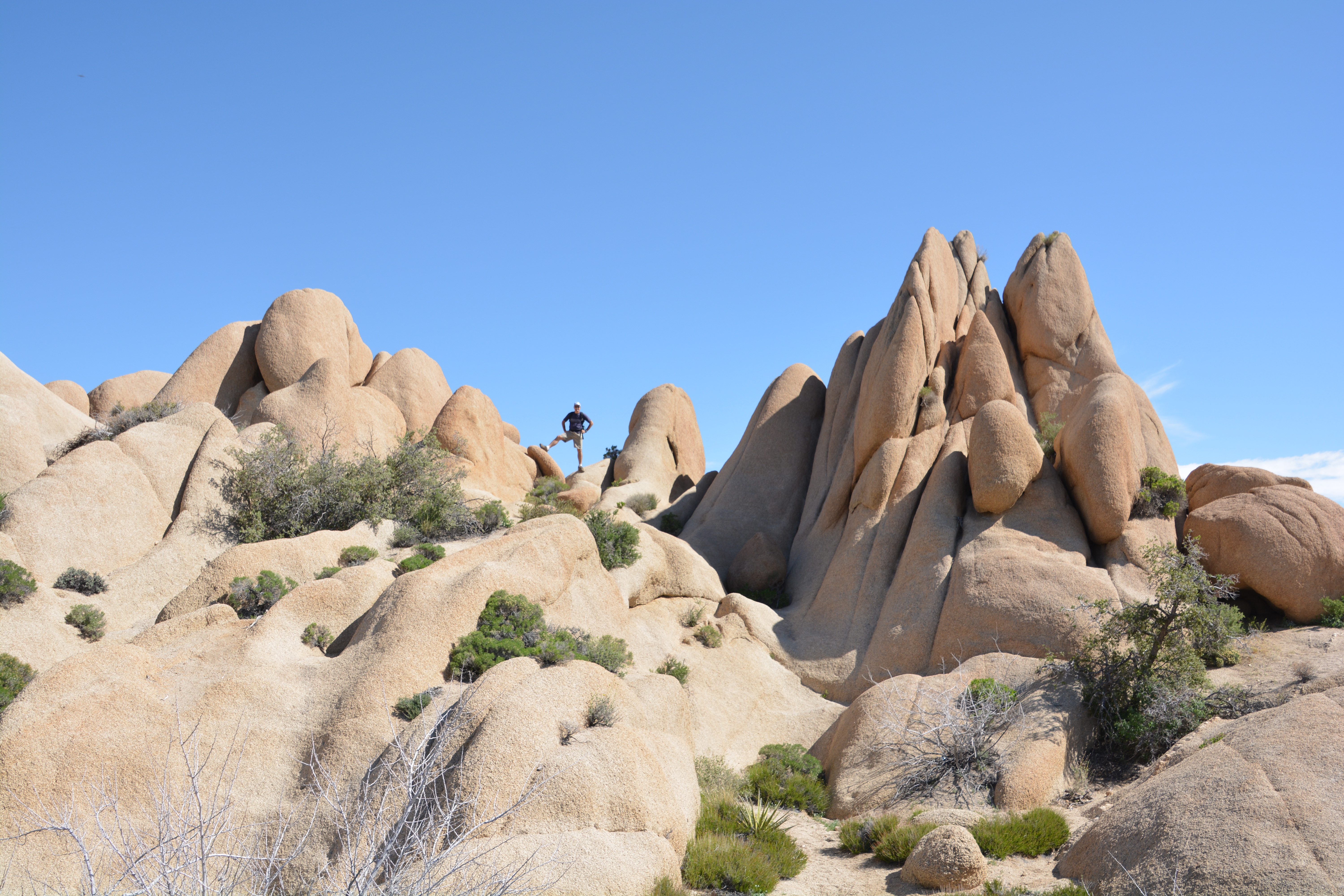 Getting a campsite in Joshua Tree NP is like deep sea trolling for fish – if you drive around long enough you eventually catch one. That’s what we did the next morning, nestled in amongst giant granite boulders with a forest of Joshua trees all around us, before venturing out on a series of interconnected walks to explore this unique land.