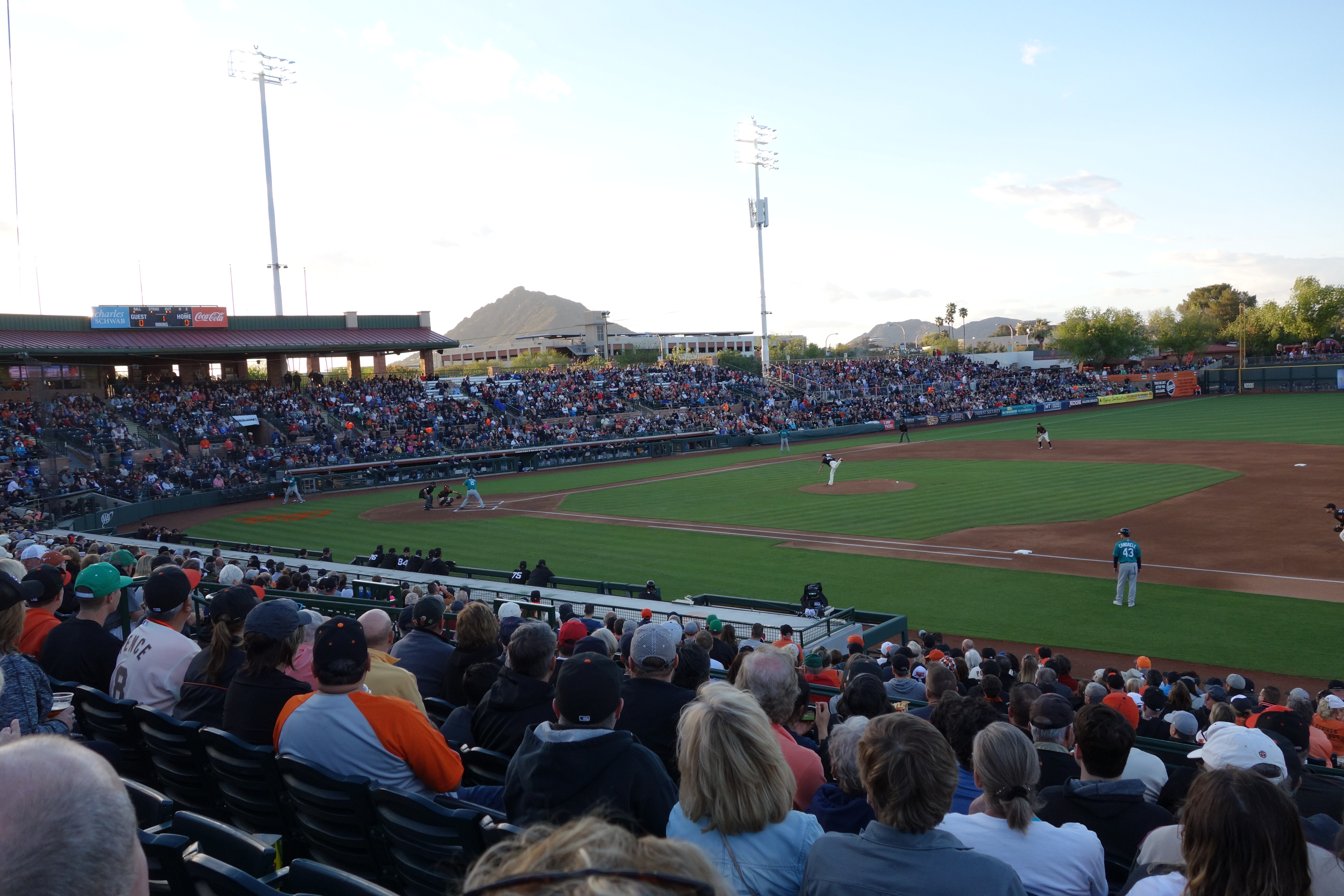 Our favourite San Francisco Giants playing a preseason game against the Marlins on a pleasant desert evening