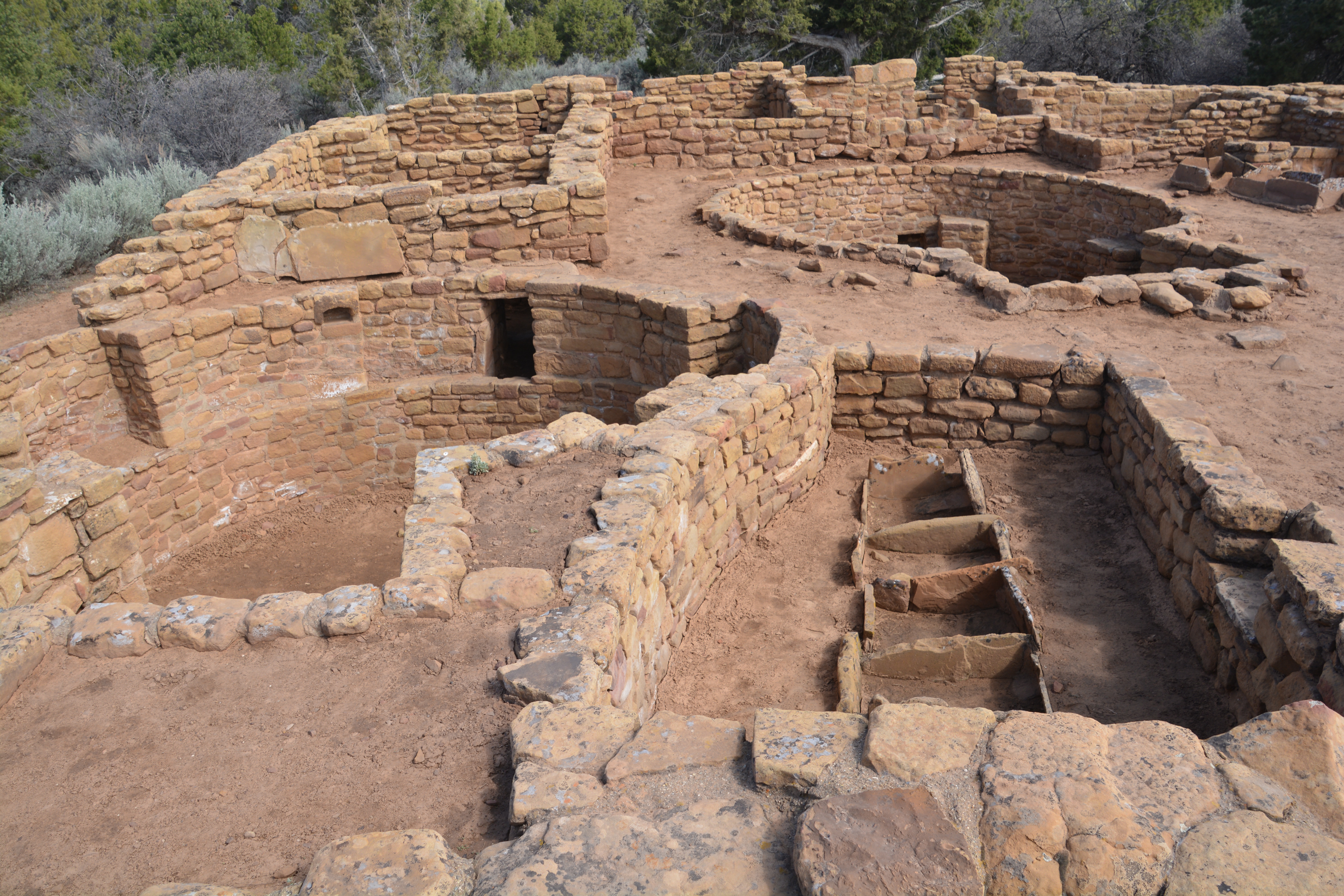 Julie and I spent a cold winter’s morning and a warming afternoon exploring these ruins, going for walks for choice vantage points, exploring every lookout, ruin and cave that we could. The short walks through stunted Utah Juniper and Pinon Pine trees gave us a chance to walk amongst their mud and brick buildings above ground and view their stunning cliff dwellings at Cliff Palace, Spruce Tree House and Balcony House and others, really special stuff.