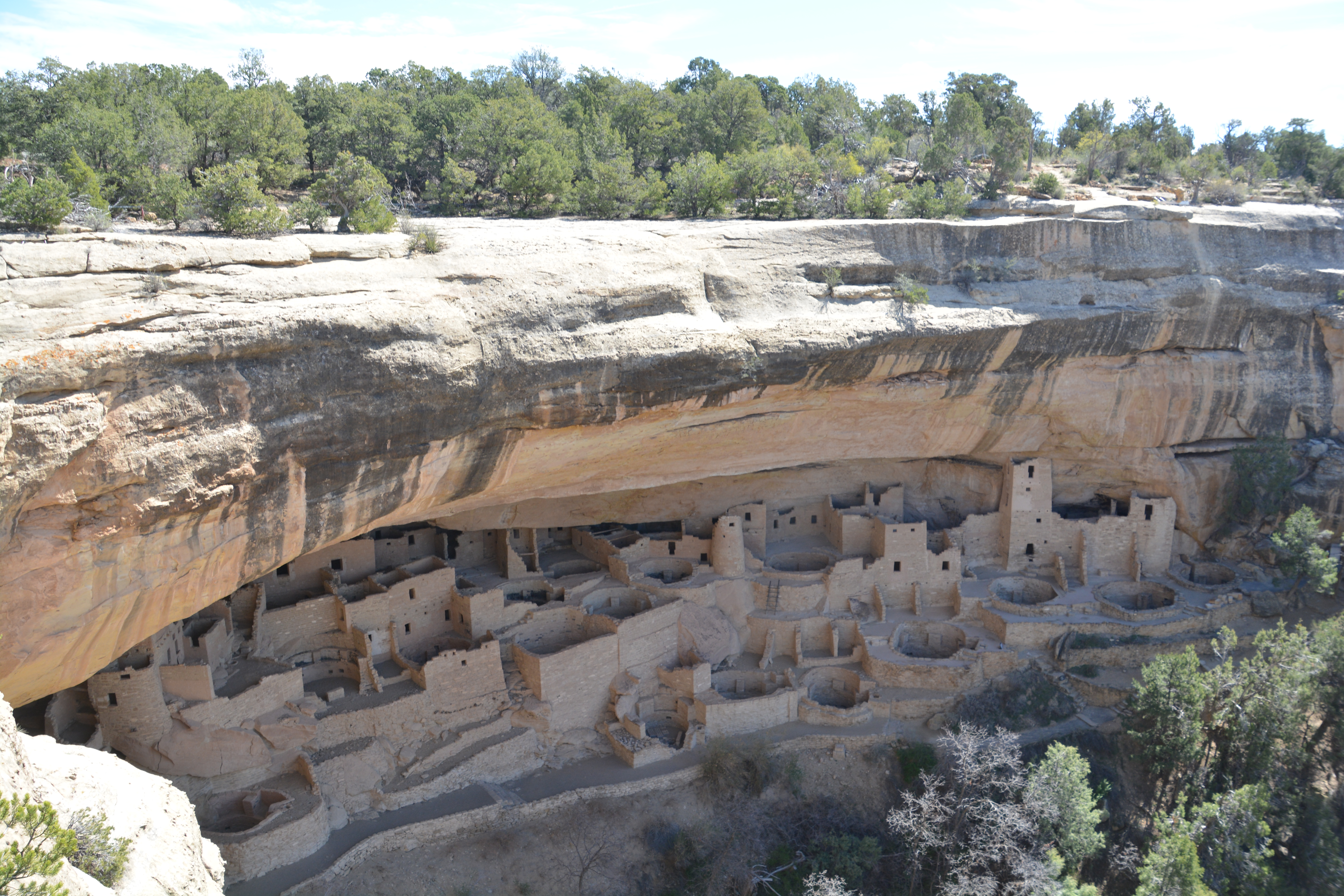 Mesa Verde is perched high in the mountains at over 8,000 feet and the ancient people who lived here must have been a hardy lot. They chose the area for reliable water and better soil to grow their meagre crops of corn, beans and squash but the winters must have been harsh and the mountains steep and rugged. But most remarkable feature of the latter half of their existence is that they lived high up on the sheer cliff walls in huge overhanging cliffs.