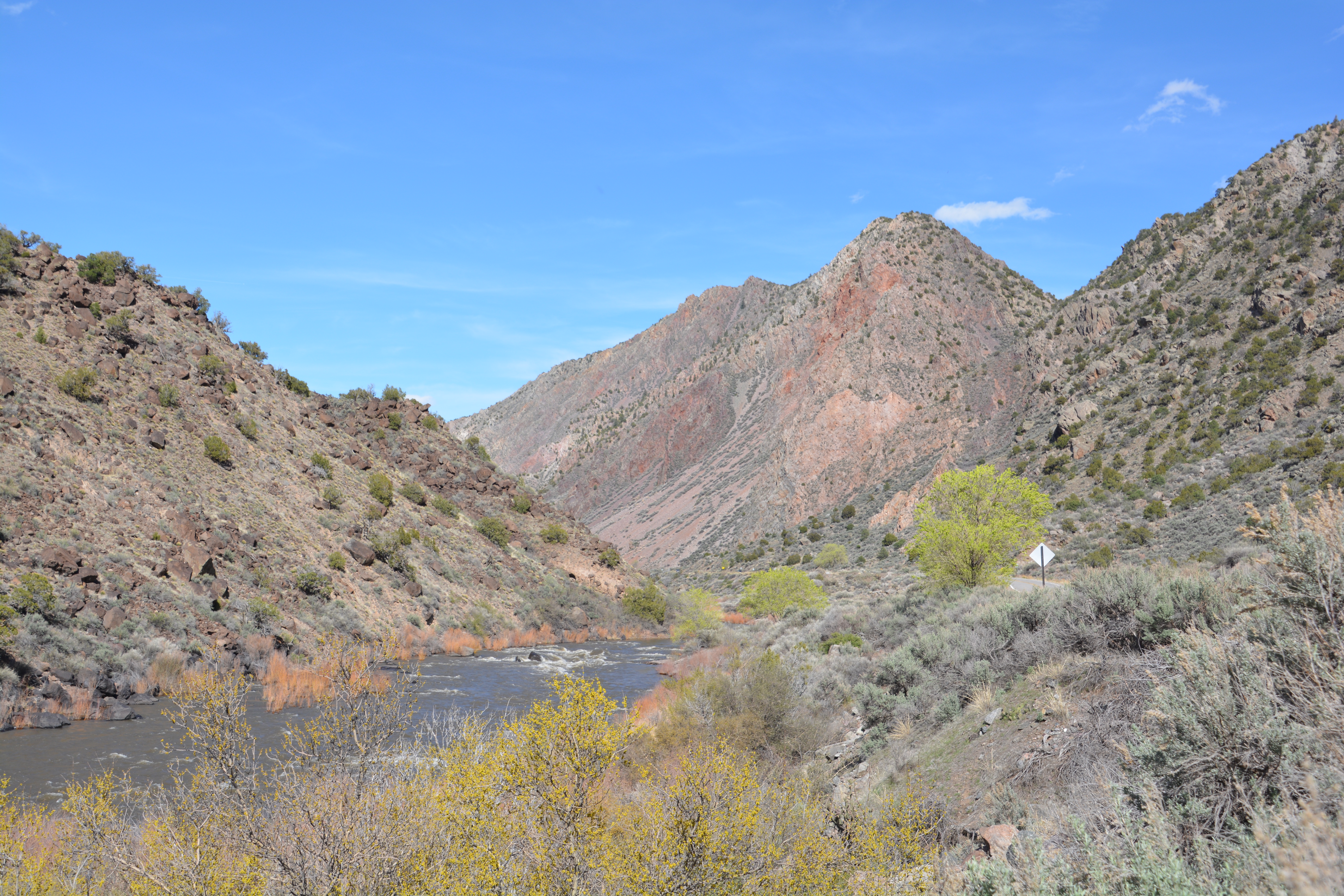 After a fabulous week or so in the other Four Corner states – Arizona, Utah and Colorado – New Mexico had a tough act to follow. So we entered it in style, following the Rio Grande south as it cut a wider path across the high plains desert, still travelling at over 7,000 feet (2300 metres) with jagged snow-capped mountains all around us. We hadn’t been lower than this for a few days and hadn’t seen the temperature rise above 60F (15C) for a similar period.