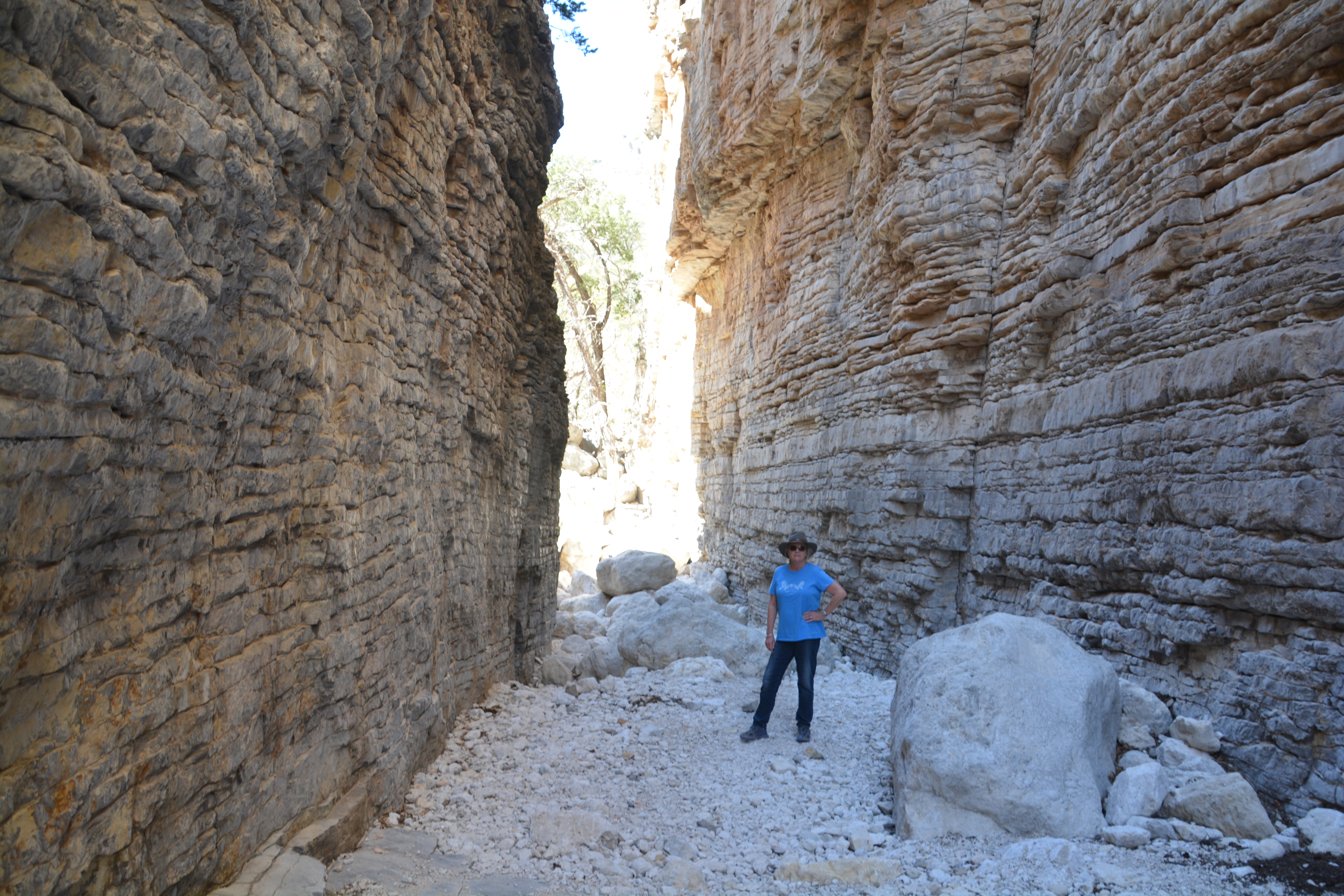 Julie and I found a camping spot for the night and then headed off on the 4.2 mile (6.7 km) Devil’s Hall walk up Pine Creek. This walk started off on the open slopes following the creek but as the canyon walls closed in the trail moved down into the dry creek bed itself and slowly wound its way up and around the narrow canyon until there was almost no room to go any further. It was a great way to stretch the muscles and enjoy this hidden park.