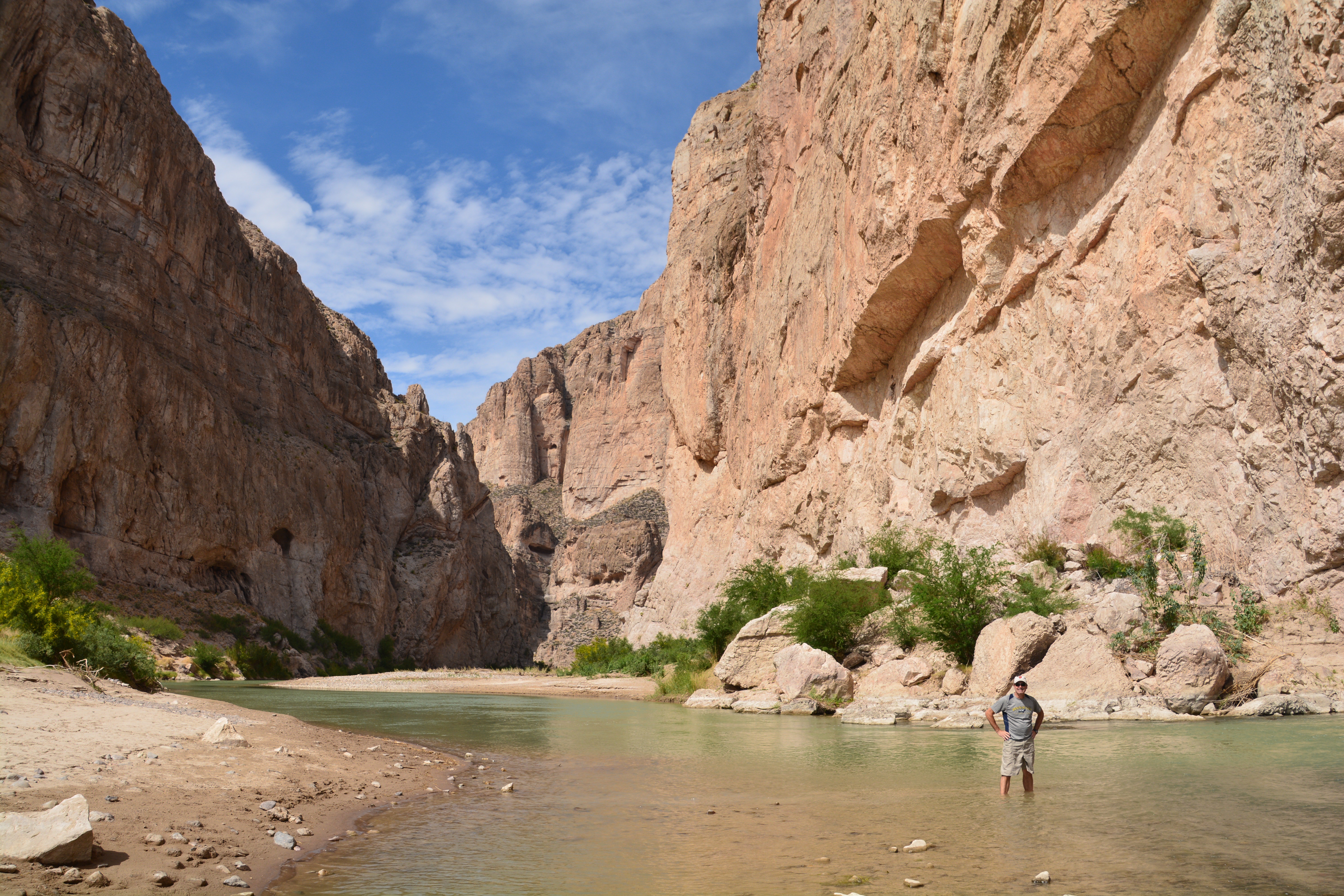 Santa Elena Gorge was formed eons ago when the river found a weak point or gap in this mammoth wall and eventually forced its way through. We walked up this gorge as far as we could, the walls towering over us as the Rio Grande flowed slowly eastward. At this stage the river is not so grand and a few kayakers and canoers reported they were walking and portaging almost as much as rowing. Still, in this setting anything would be acceptable.