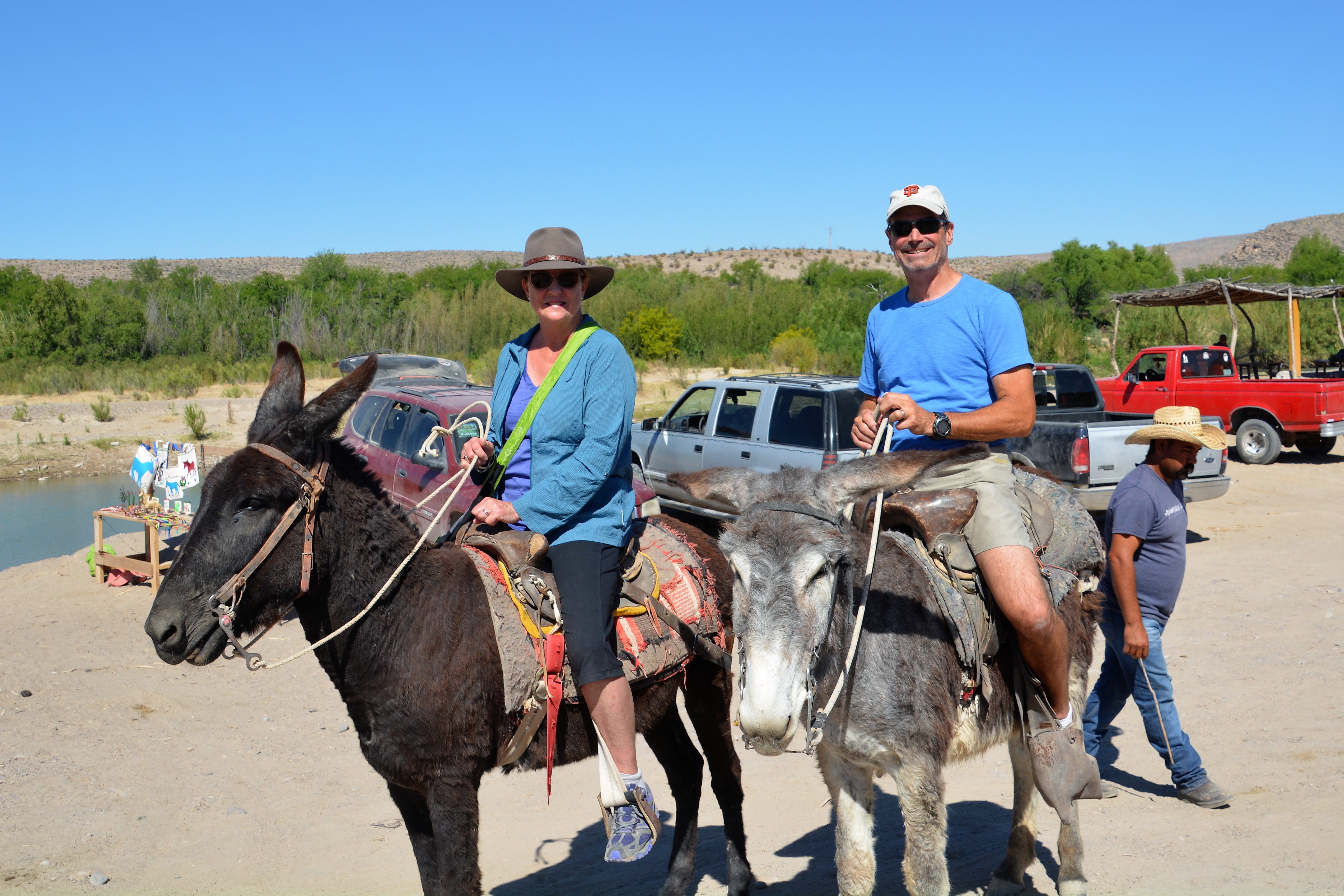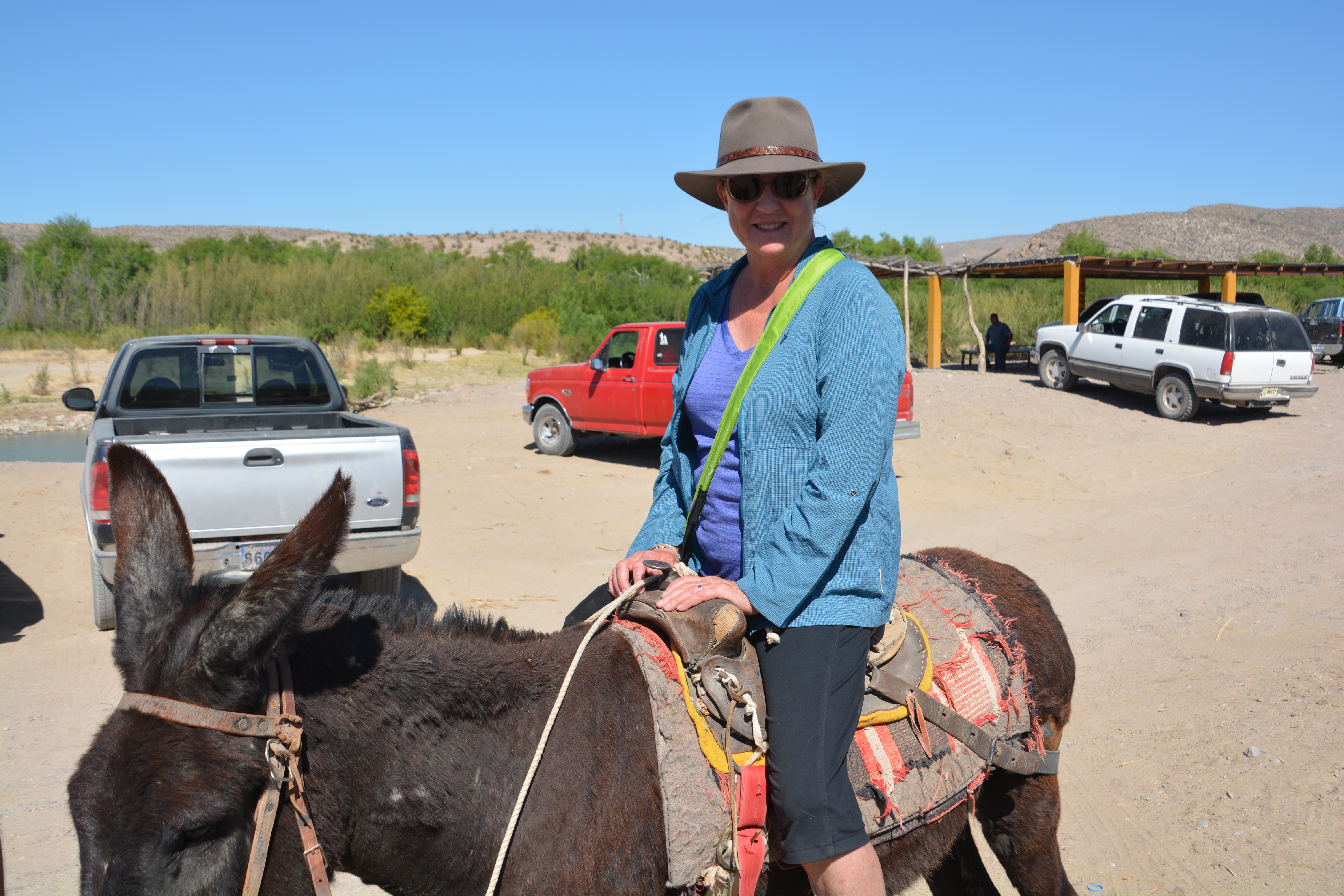 From there we climbed onto a donkey (Julie) and a burro (me) – and were taken up the dusty track to the border town of Boquillas de Carmen. We had our passports stamped and then walked up and down the only road in this small village, a dirt track lined with very modest houses all selling very cheap little trinkets and souvenirs. After we each bought something to remind us of this momentous event we retired to the local cantina for some enchiladas, tacos, cervezas, and in the case of Julie, a margarita. We then reversed the order and via donkey, row boat and US Immigration returned to Tramp who had patiently been waiting in the 100F (39C) sun.