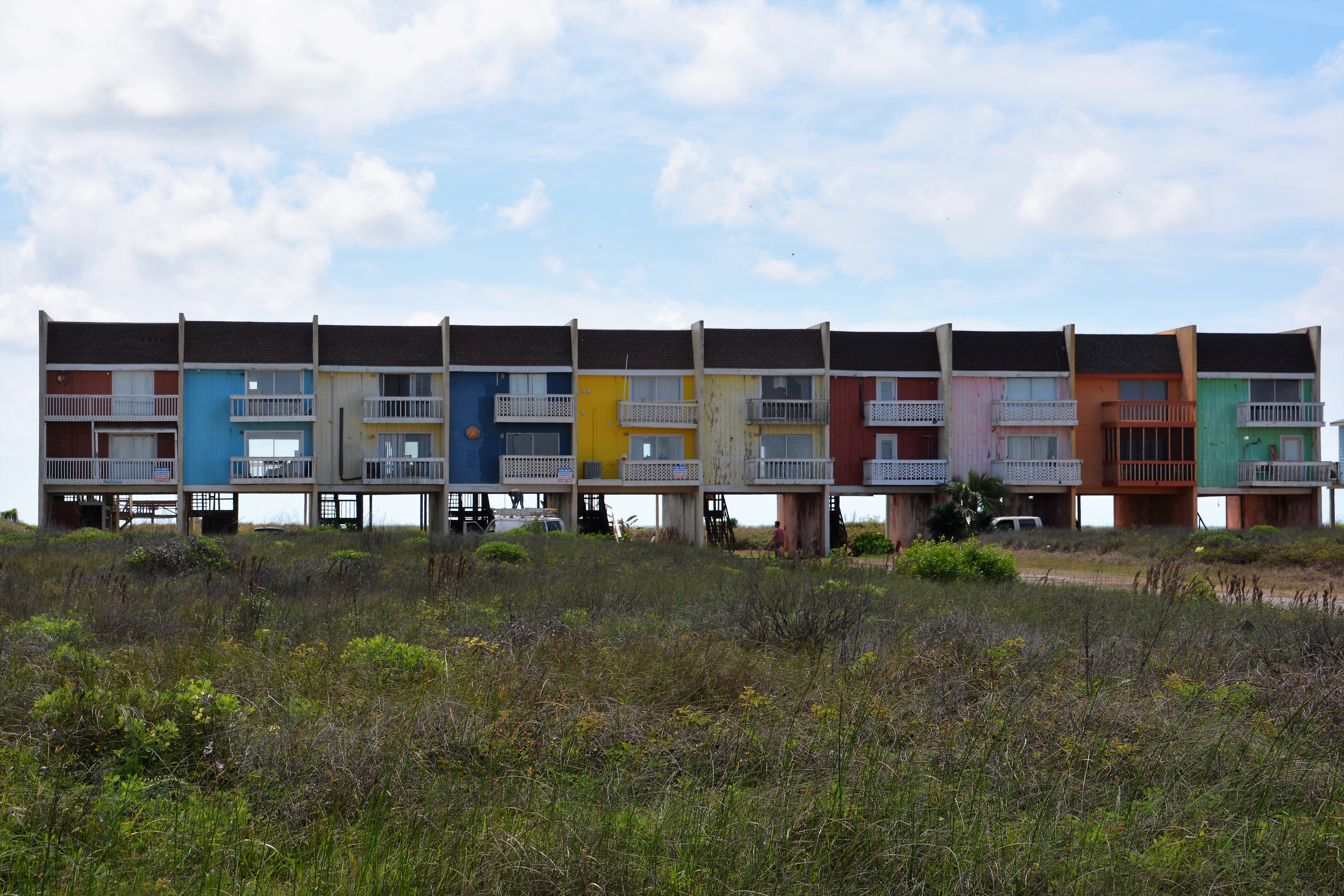 We hit the Gulf of Mexico at the small town of Surfside and headed north up the beach along a string of permanent sand bars and banks. The houses here was fantastic – all built on stilts to withstand storms and painted in beautiful pastel colours such that at some times it was almost a fairy tale setting. We passed through the beachside town of Galveston and caught a ferry that crossed the large water ways in this southern delta. We then continued heading north along the water, stopping frequently to see how Texans enjoy their beaches.