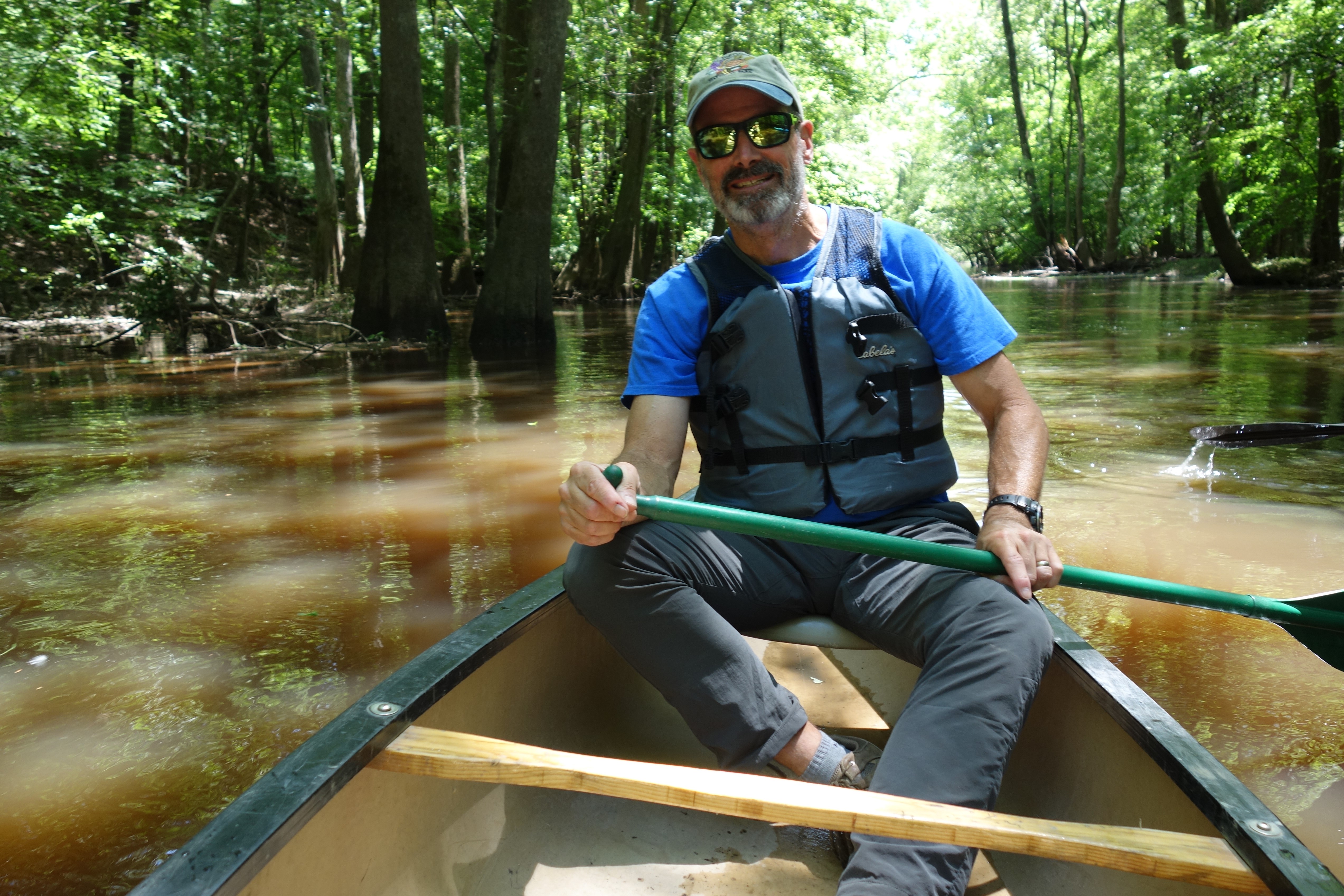 We then took up a free offer from the national park to jump in a couple of canoes and paddle down Cedar Creek which runs through part of the park amongst the cypress, pines and other trees. This was a beautiful and peaceful experience sliding slowly through the dark water, under the branches of low hanging trees, the occasional fish jumping up, seeing the park from a unique perspective. Our young volunteer guide had said the only way people fall out of their canoe and into the water is when a snake drops from a branch into their canoe. We managed to avoid that embarrassing scene.