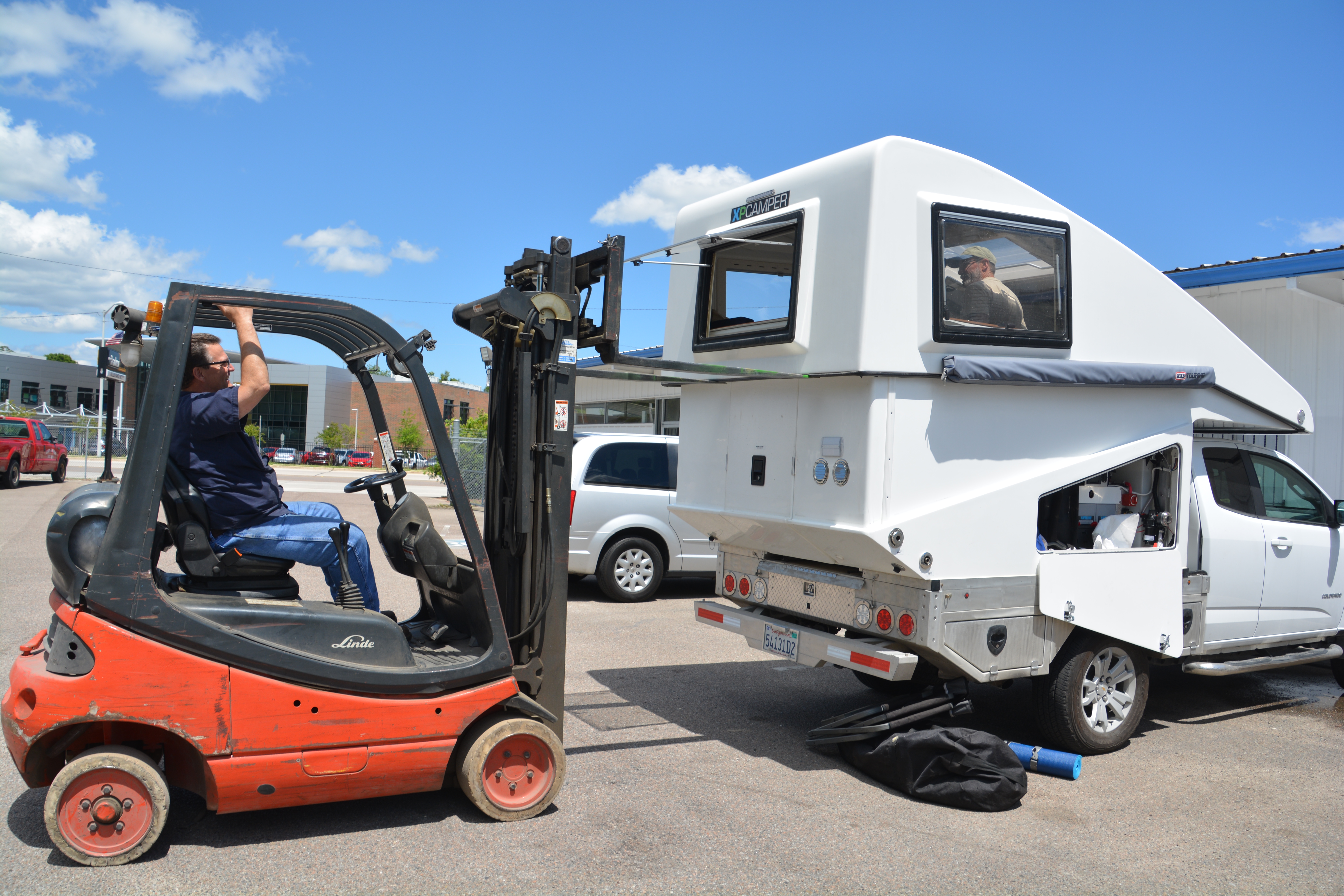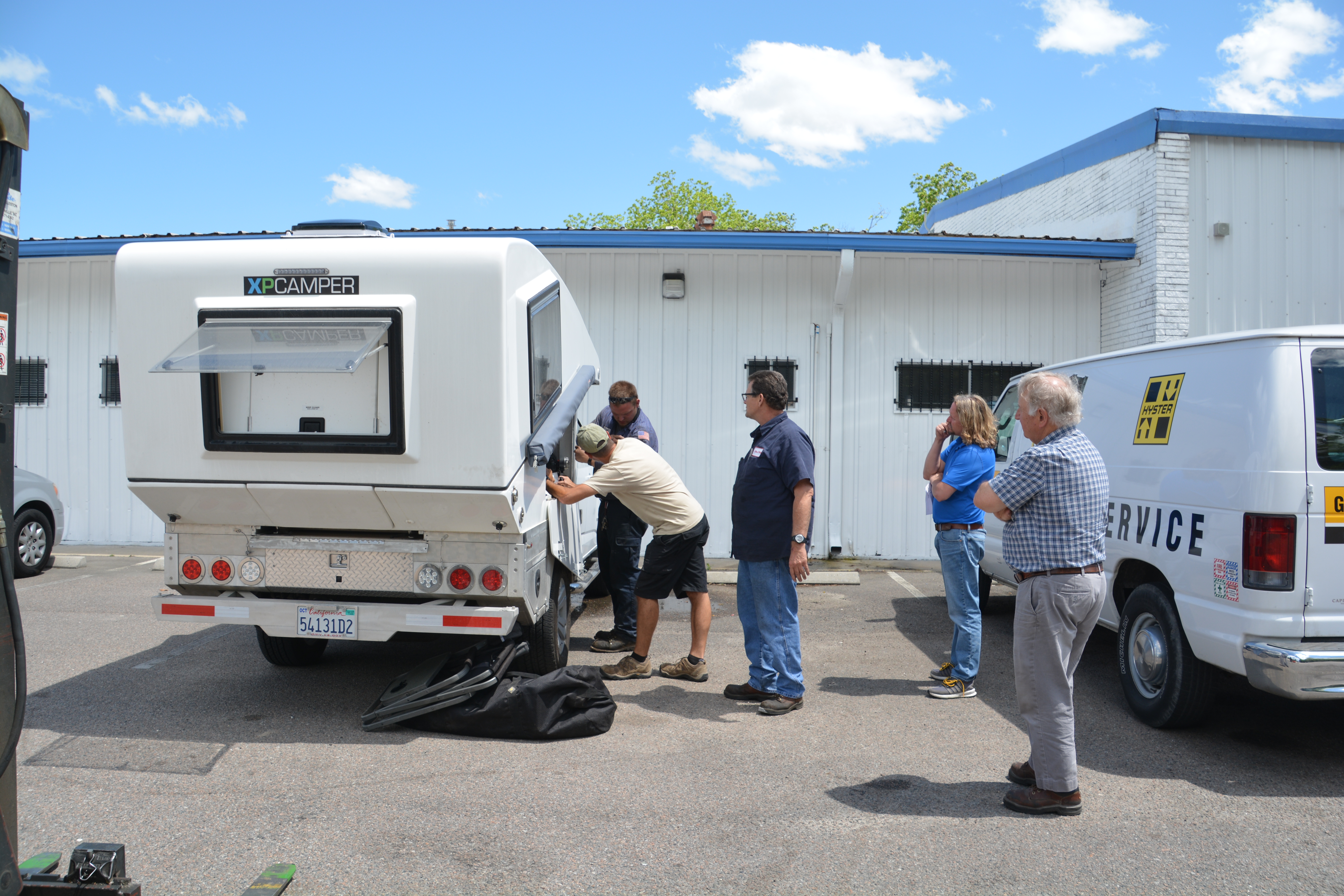We had some unfinished business we needed to deal with in Charleston. Mighty Tramp had been having problems with its hydraulic arms that raise and lower the top shell to the camper. The top was rising crookedly which was putting a lot of pressure on one side and was not allowing the door to fully open.