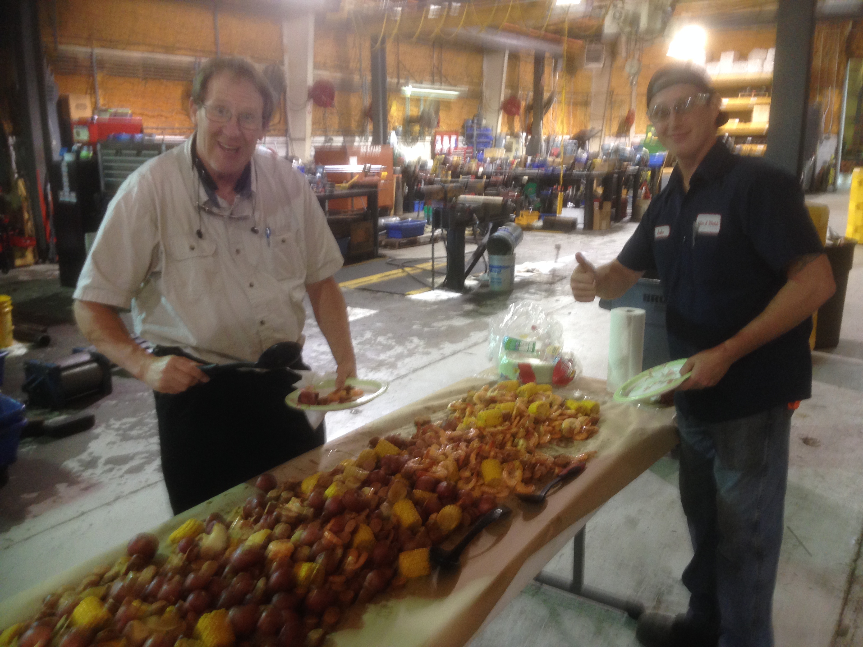 We were parked in front of their entrance for four and a half hours, attracting a crowd of curious bystanders and getting a lot of good professional advice from Charles (the owner), Chuck, Danny, Beau and Chris, the latter of which worked for a forklift repair company and happened to pull in to pick up some parts and stayed for a long time to help us solve our problems.