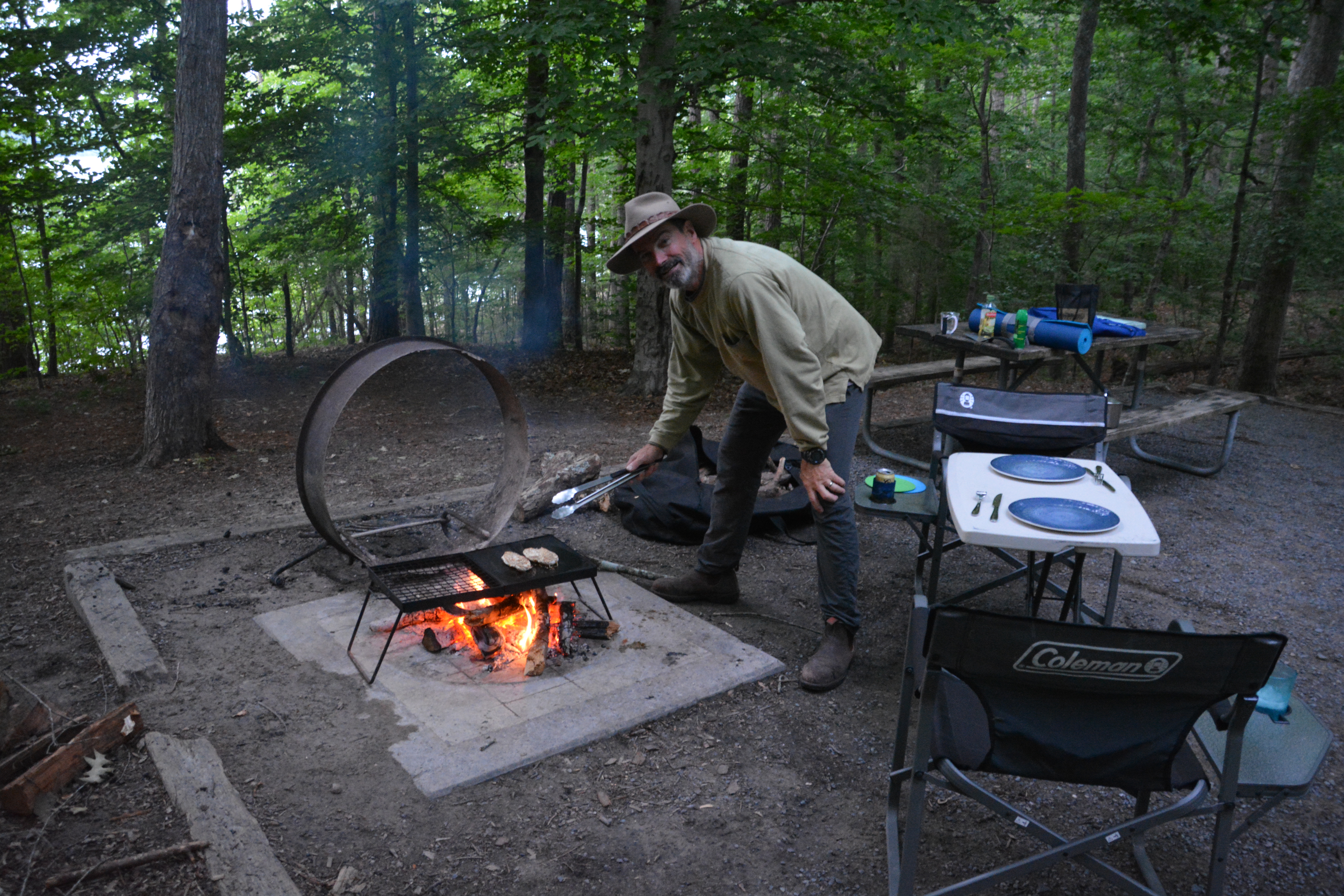 Cooking up some dinner at Lake Jordan in central North Carolina, a beautiful spot to spend the night