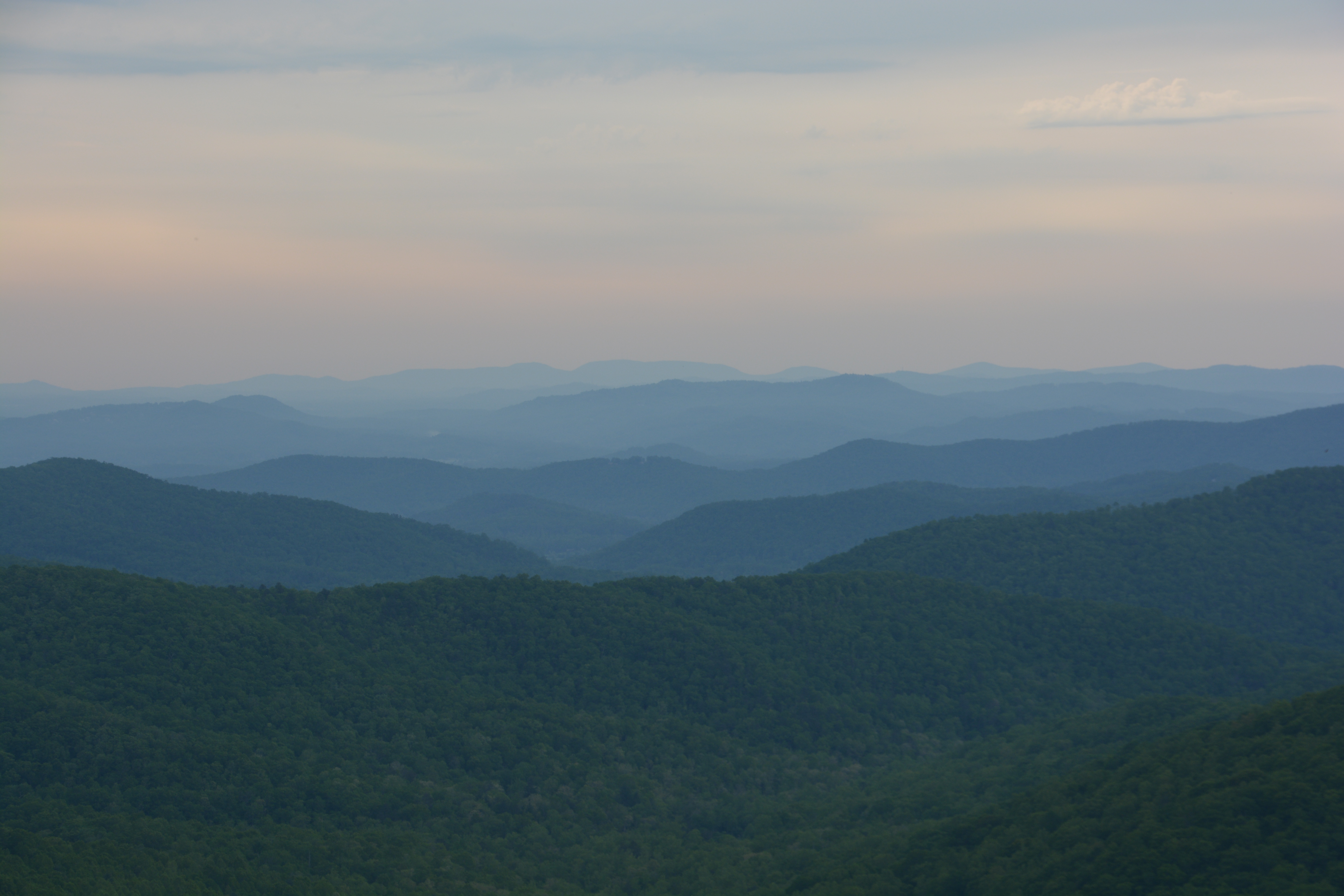 One of our first views from the Blue Ridge Parkway – beautiful green rolling mountains fading off into the distance