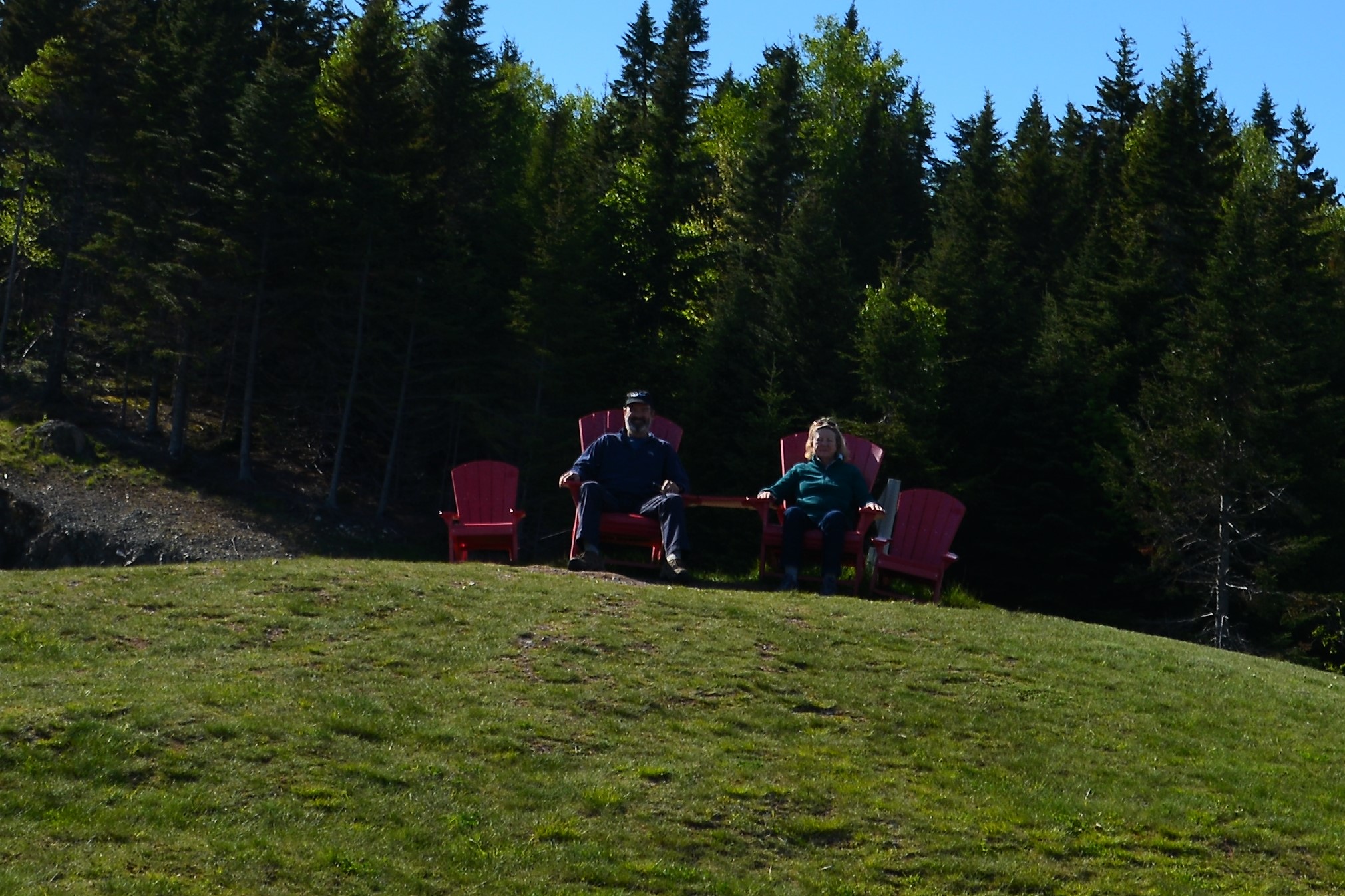 Red Adirondack chairs are sometimes seen in the oddest places – including this scenic lookout in Fundy NP
