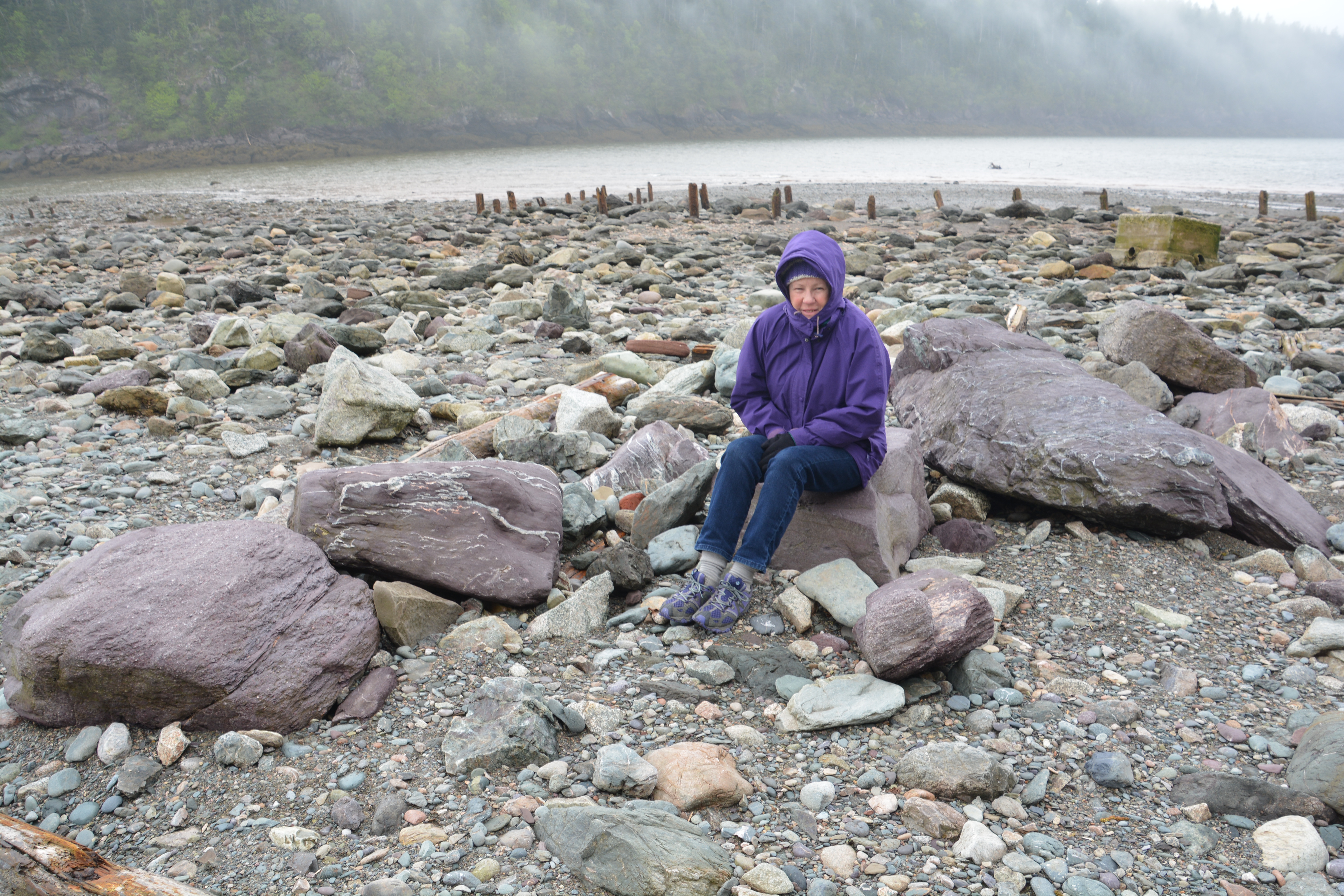 We eventually made our way to Fundy National Park which preserves some beautiful country near the bay itself and draws visitors to see these amazing tides. We camped in the park near the coastline and walked into the little town of Alma, blanketed in swirling fog that added a surreal experience to the area, where we explored the shops and had a couple of Moosehead beers in a local pub to celebrate the moment. Our waiter, a local lad, told us Alma in the winter, where the snow is deep and the temperature can get to minus 20C, has only about 200 people but the lobster fishermen still go out when the tide is right. The town is busy in July and August but otherwise curls up and tries to stay warm.