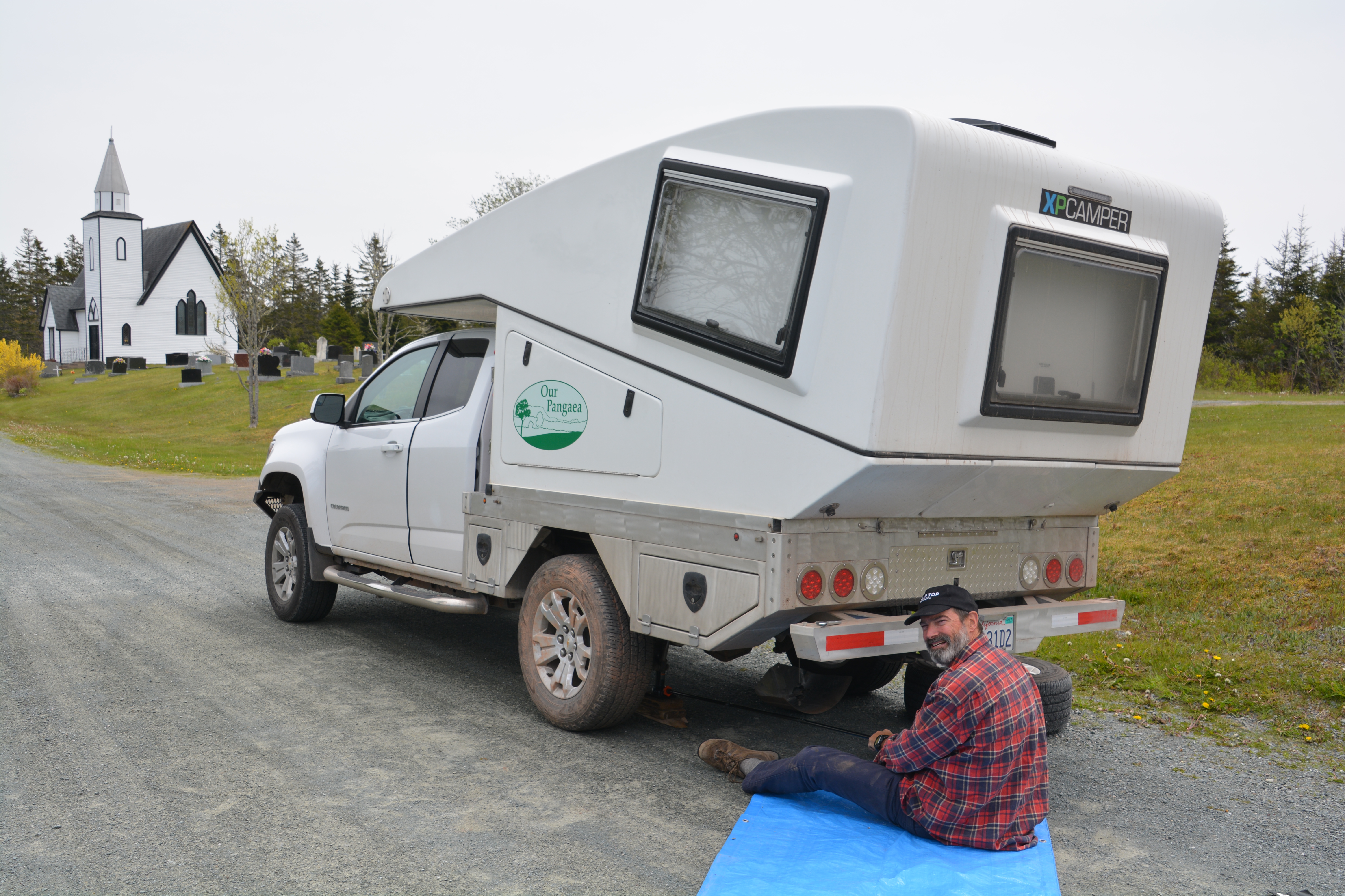 We drove up to the major town of Antigonish where on the third tire shop we bit the bullet and bought five new ten-ply all terrain tires that would see us through the rough roads of northern Canada and Alaska. They were outrageously expensive and had to be shipped overnight from Halifax but for reliability and durability we knew we had to get off these inappropriate Goodyear Wranglers that came with Tramp. In the end we only had four tires and one of them had two patches so we needed to swallow hard and spend the money.