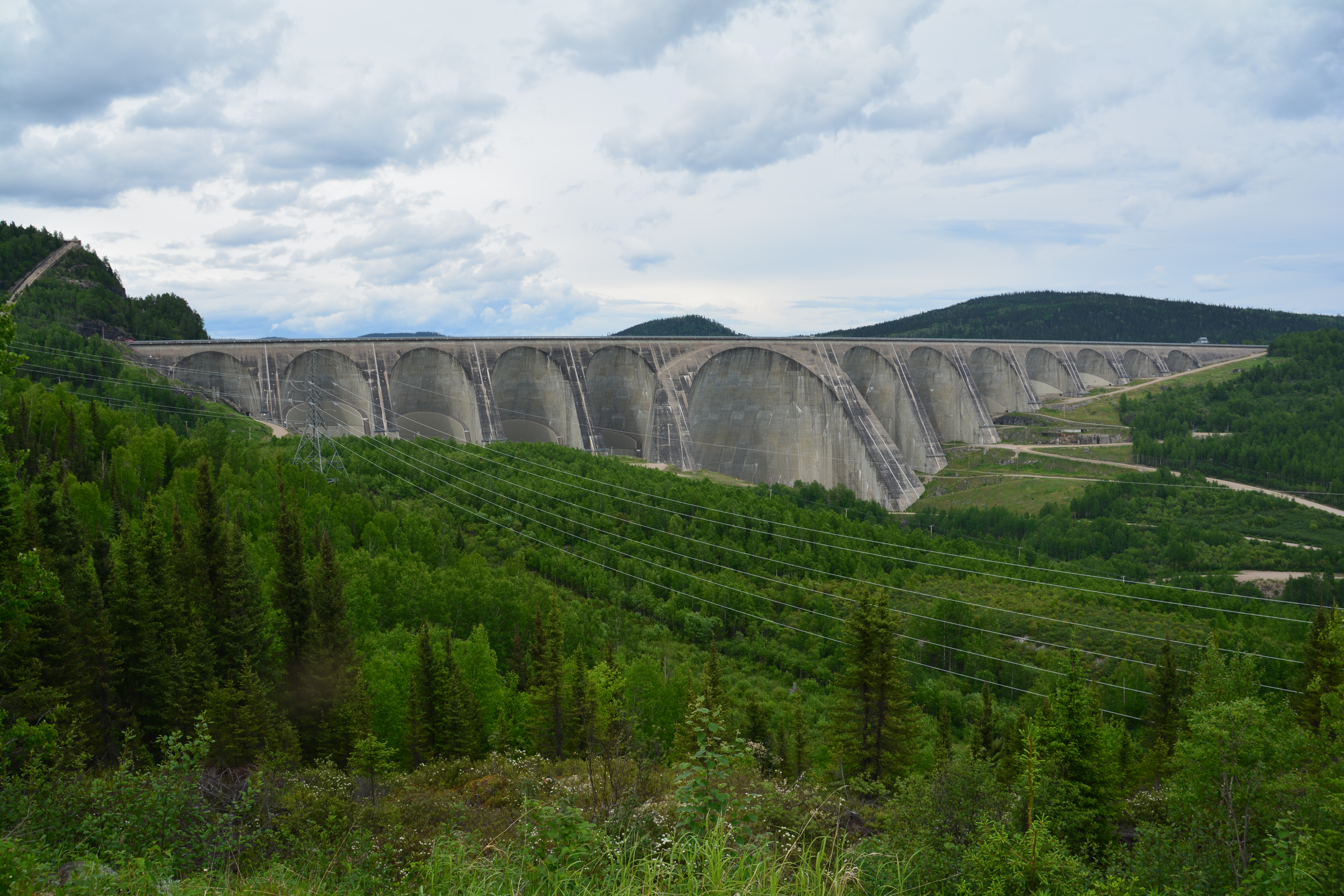 At one stage we passed through the ghost town of Gagnon which was abandoned in 1985 when the local mine closed down and all buildings were demolished and removed. At another point we passed the fifth largest meteorite crater in the world, now a reservoir that powers the massive Manic Cinq hydroelectric dam. It was a beautiful and more varied drive than the day before and we found a great little bush camp tucked away under the massive power lines from the giant hydro dam. The nasty biting and sucking black flies, the only true villain of this beautiful land, were out in full force and drove us to distraction.