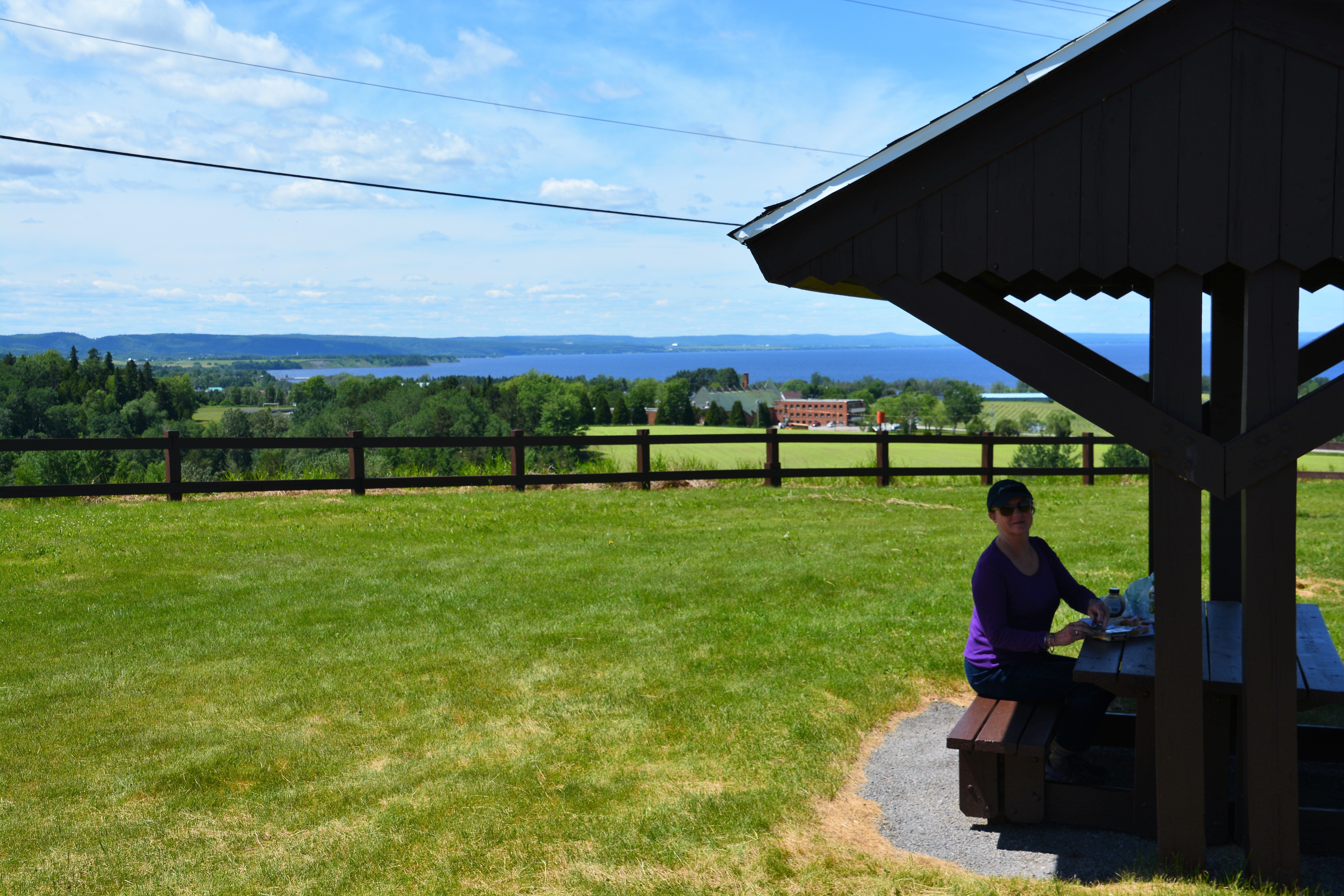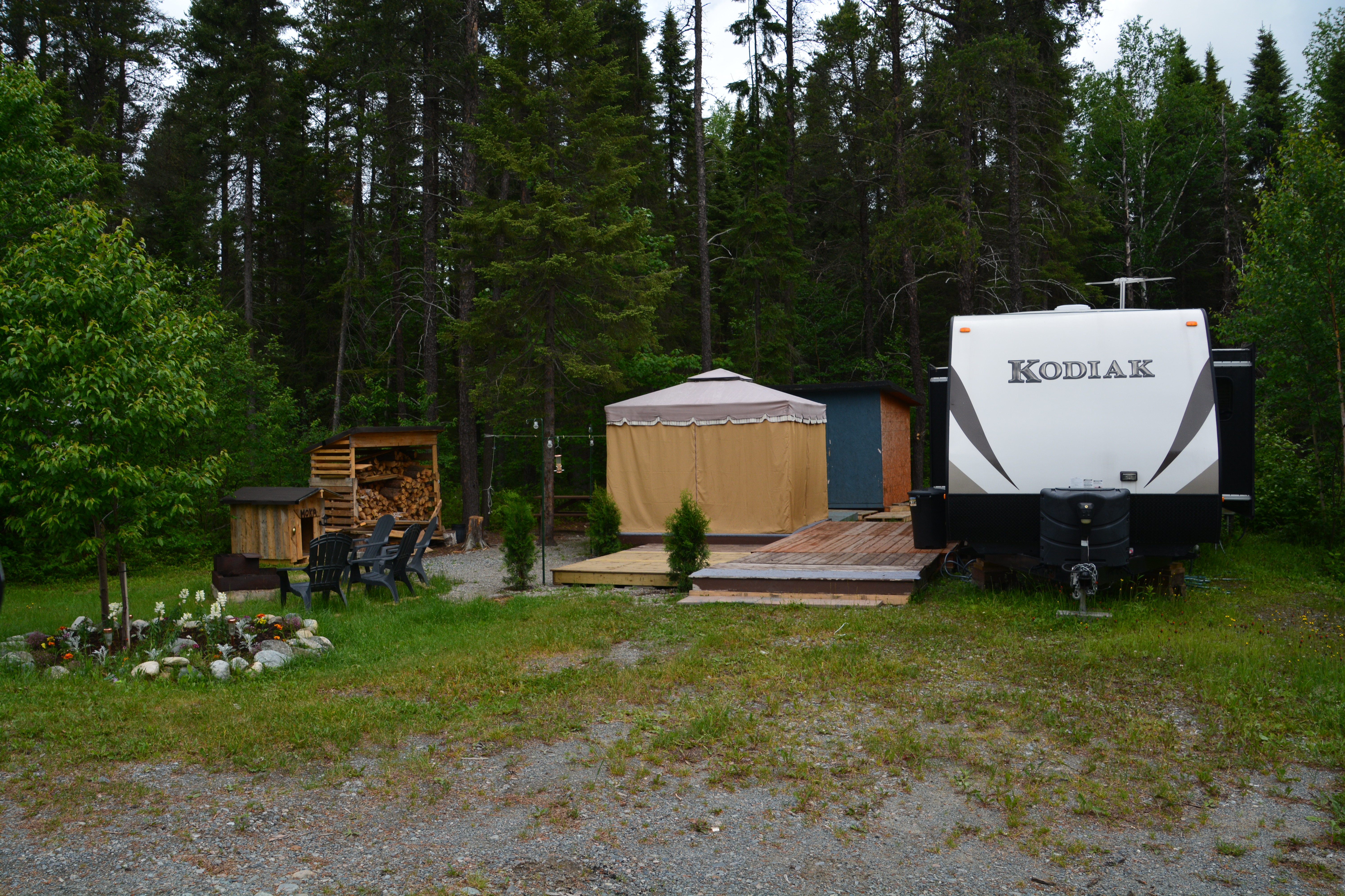 We stayed in a regional park one night for showers and found Quebecois took stagnant camping seriously, including bug tents, wood shelters and a storage shed