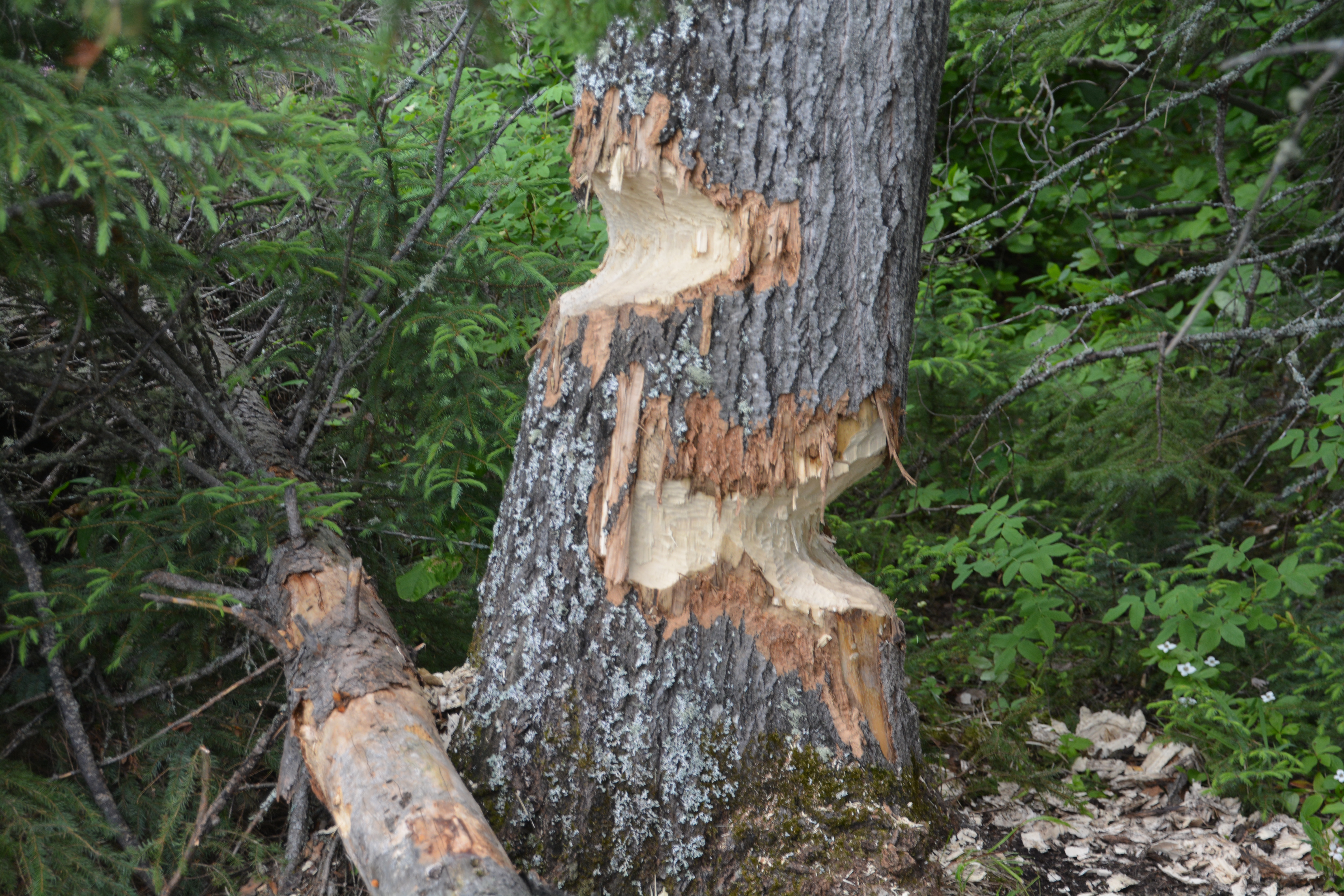 The next day we did a beautiful little 2km walk along a nearby lake and followed a creek upstream which had a number of active beavers. We saw very fresh tracks and bear scat on the trail plus a number of big trees that had been recently felled and cut into pieces by an industrious little beaver. Later we were told a bear had been seen moments before we started the walk.