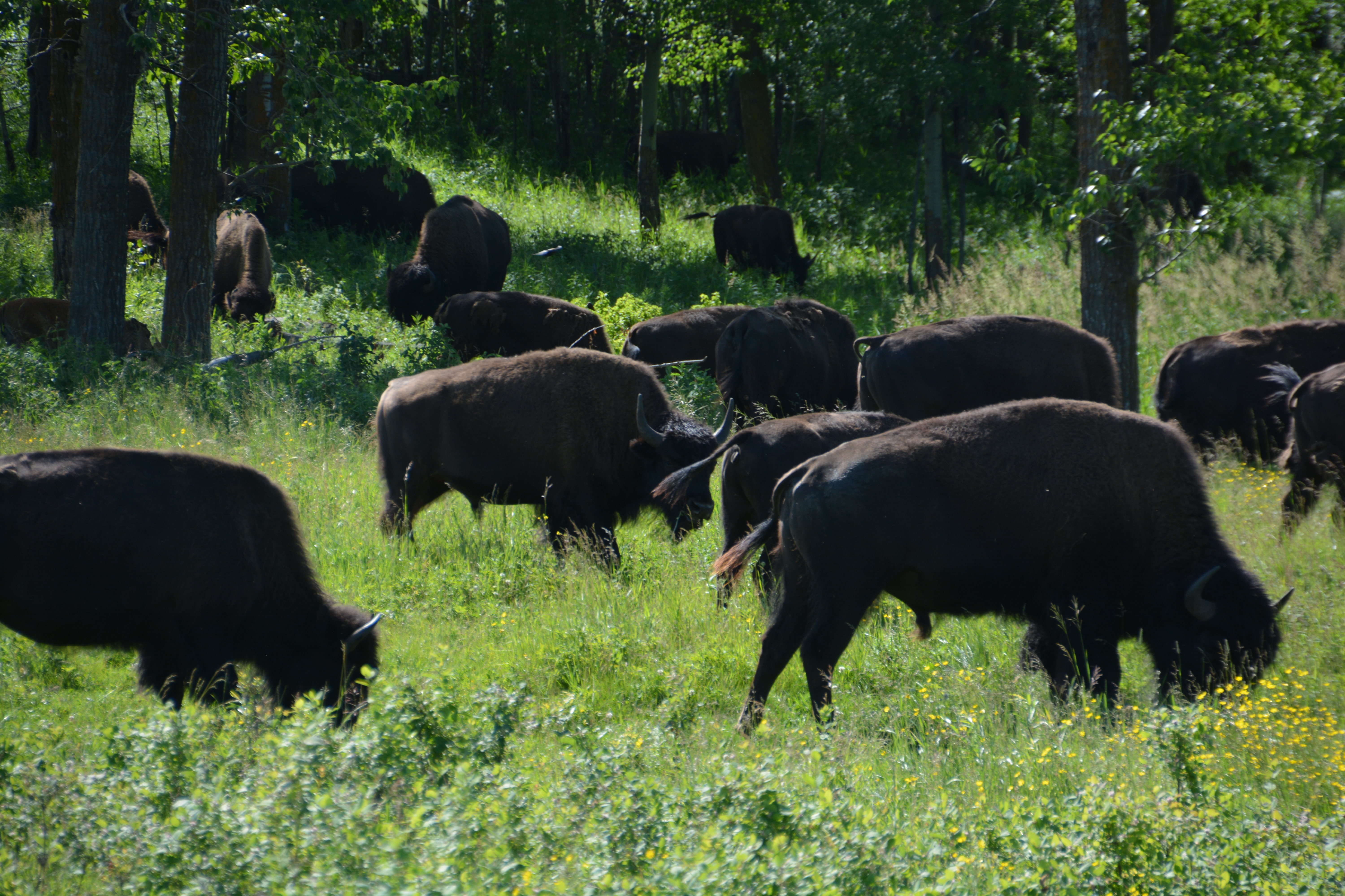 Before we reached Edmonton we pulled into a very unique place – Elk Island National Park. Unique because it is the only national park in Canada (and maybe the world?) which is completely enclosed in a heavy duty fence to keep all its large wild animals inside. The feeling while inside these fences was perhaps like being in a real-life Jurassic Park but without the velociraptors. We were told you can find – if you’re very lucky – what they call ‘the big six’ which is elk, plains bison, woods bison, mule deer, white tail deer and moose.