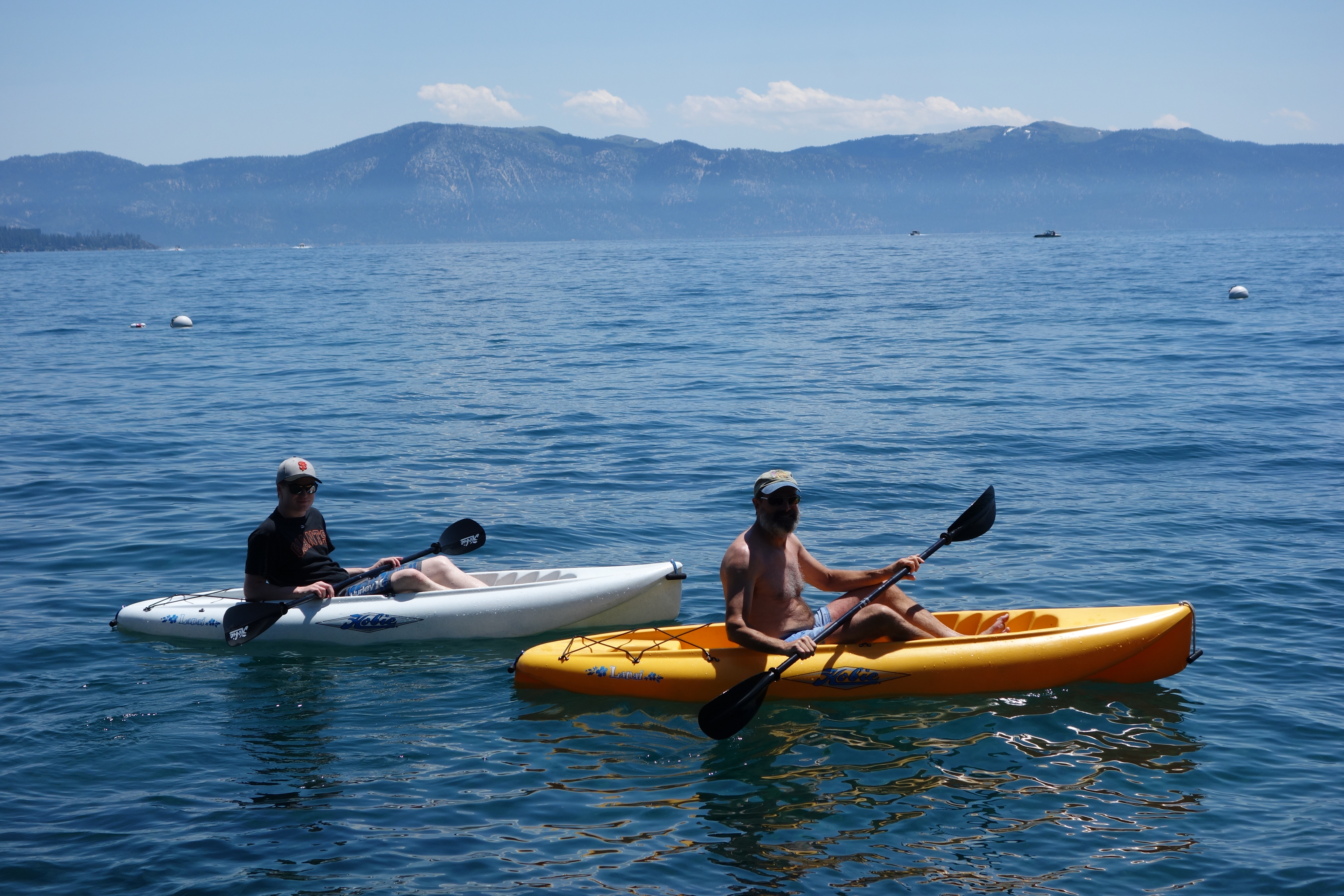 We parked Tramp at Edmonton airport and after three flights and a car rental we ended up at the family holiday retreat on the shores of beautiful Lake Tahoe. This picturesque mountain lake, which sits at 6,200 feet (2,000 metres) high in the Sierra Nevada Mountains, still featured snow on the peaks of its surrounding mountains and its blue water sparkles in the hot summer sunshine. We ‘hung out’, as they say, for a couple of days with our extended California family, enjoying the water sports during the day and the great family time in the evenings.
