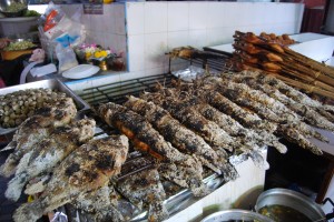 From Nong Khai we turned east and followed the Mekong through the small villages, occasionally stopping to see the boats and fishermen on the river. Different villages would specialise in different products for sale on the side of the road, depending on what they were growing nearby. That’s why at one stage we passed dozens of stands selling beautiful bananas, later it was huge ears of corn, further down the road pineapples. The land near the Mekong was clearly fertile for the locals.