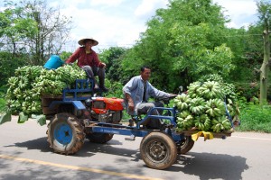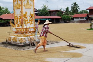We stopped in the small town of Pak Chom and found a little local restaurant with its 2005 calendar on the wall where we enjoyed our favourite khao phat gai before leaving the Mekong, sadly, and heading south. This hilly farmland was as rich as any we’ve seen in Asia, although most of it had been cleared from the surrounding rainforest. The local farmers grew bananas, rubber trees, mangoes, papaya, oil palm, countless fields of rice and other stuff we couldn’t identify. It was green, lush, fertile and productive for the farmers. This is one reason why Thailand can export a lot of crops (they are the largest exporter of rice in the world) and why their economy continues to grow at a wild rate.