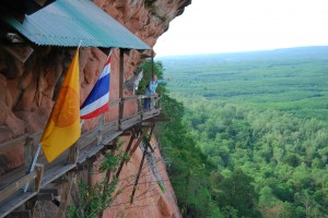 Our target that afternoon was Wat Phu Tok, about 175 km from Nong Khai. Yes, some people will say that I will drive any distance for a good wat but this place was exceptional. But we also unequivocally proved it wasn’t easy to find. The signs were all in Thai and the numerous small roads, some not even paved, made it tough to navigate. Despite our best efforts and asking many many locals where it was, Wat Phu Tok proved quite illusive. Eventually by late afternoon we found it, or it found us as we spotted it on the limestone face of a standalone mountain.