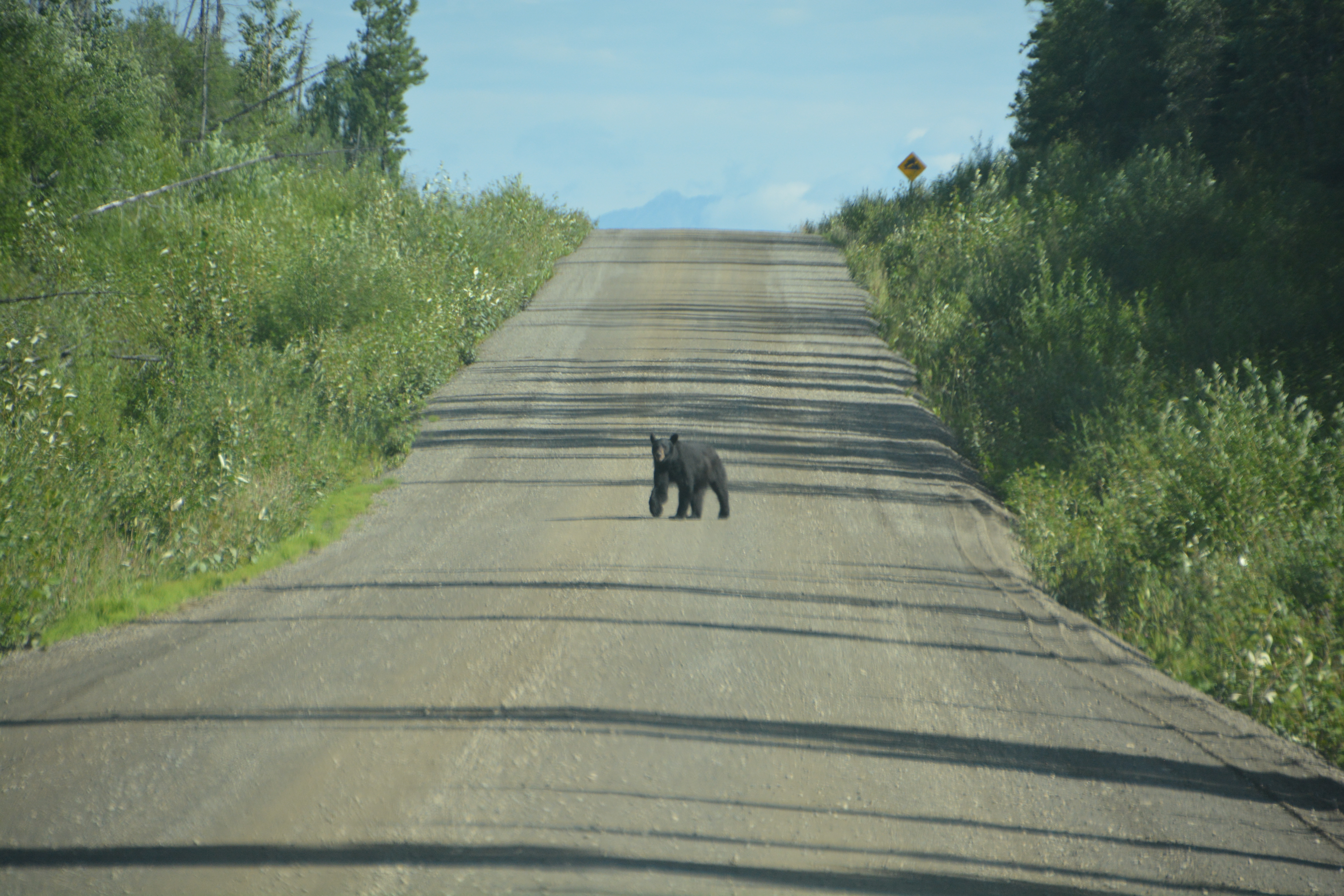 Hey – we’re not afraid of you, get off our road…we bravely said from a distance when this black bear stopped us