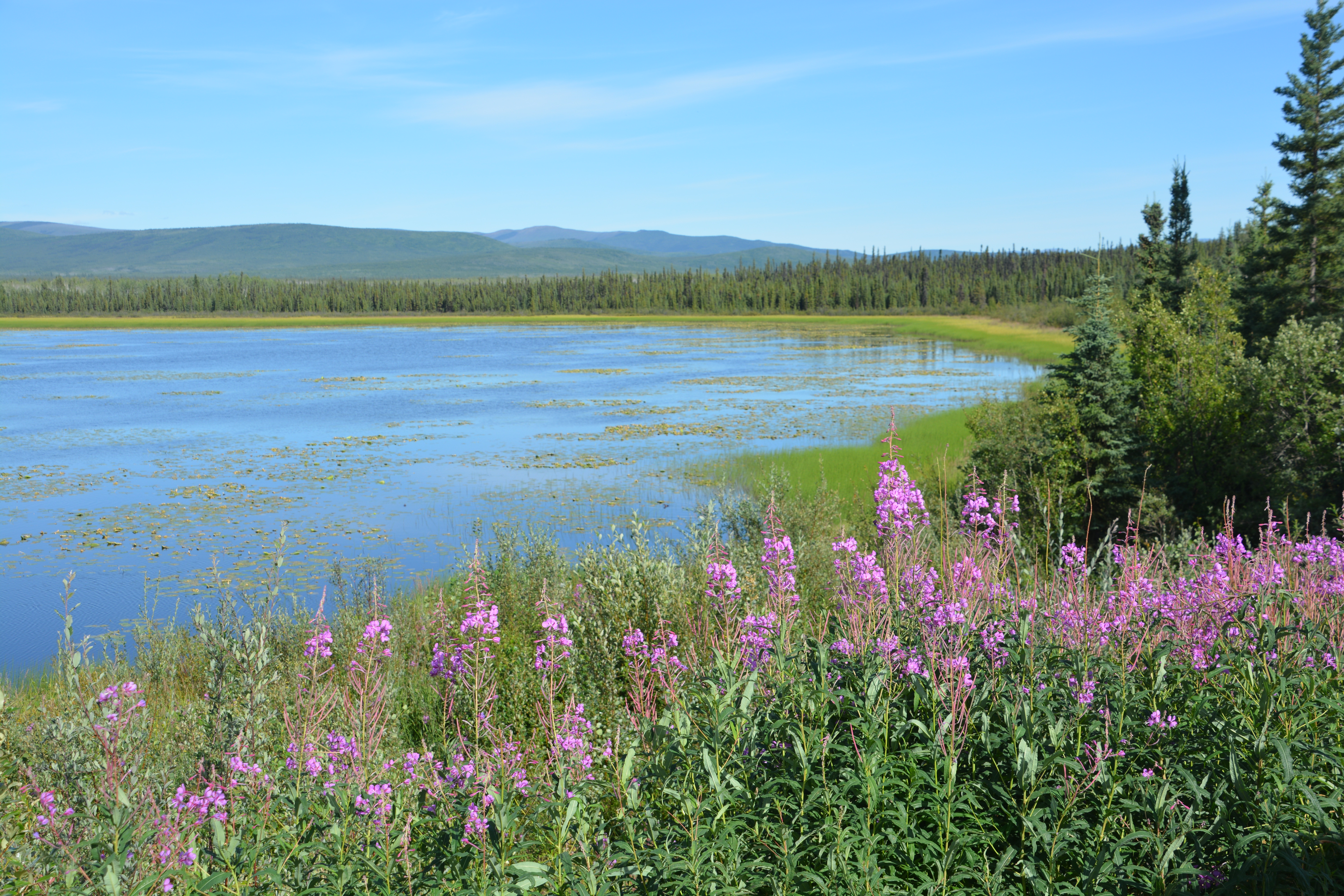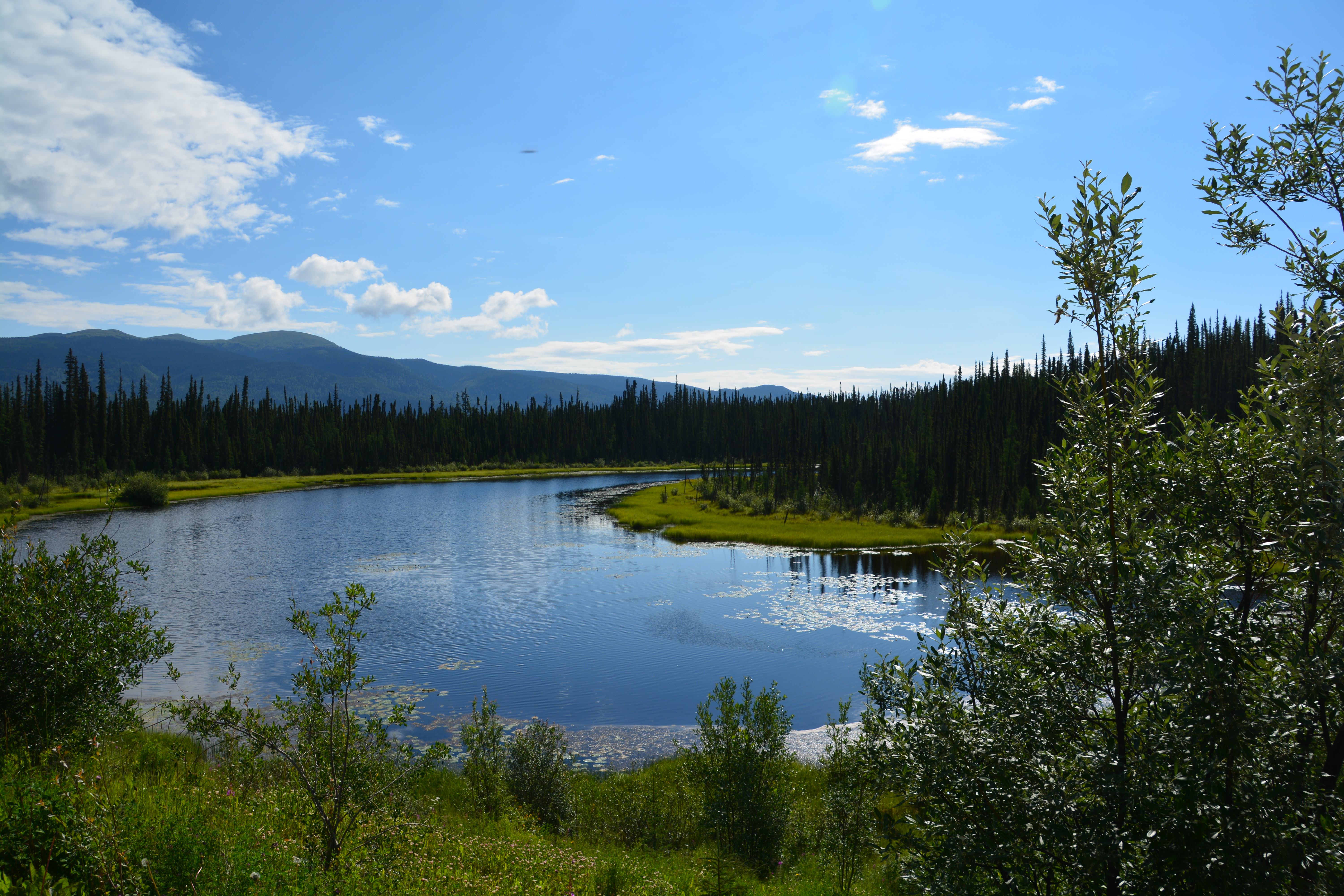 What the Campbell Highway lacks in traffic it makes up for in magnificent scenery. The previous morning we saw more moose than cars and on this morning we drove for almost two hours before encountering our first ‘traffic’. The far reaching mountains and constant companions of either fast flowing streams or beautiful high-mountain lakes kept us fully entertained.