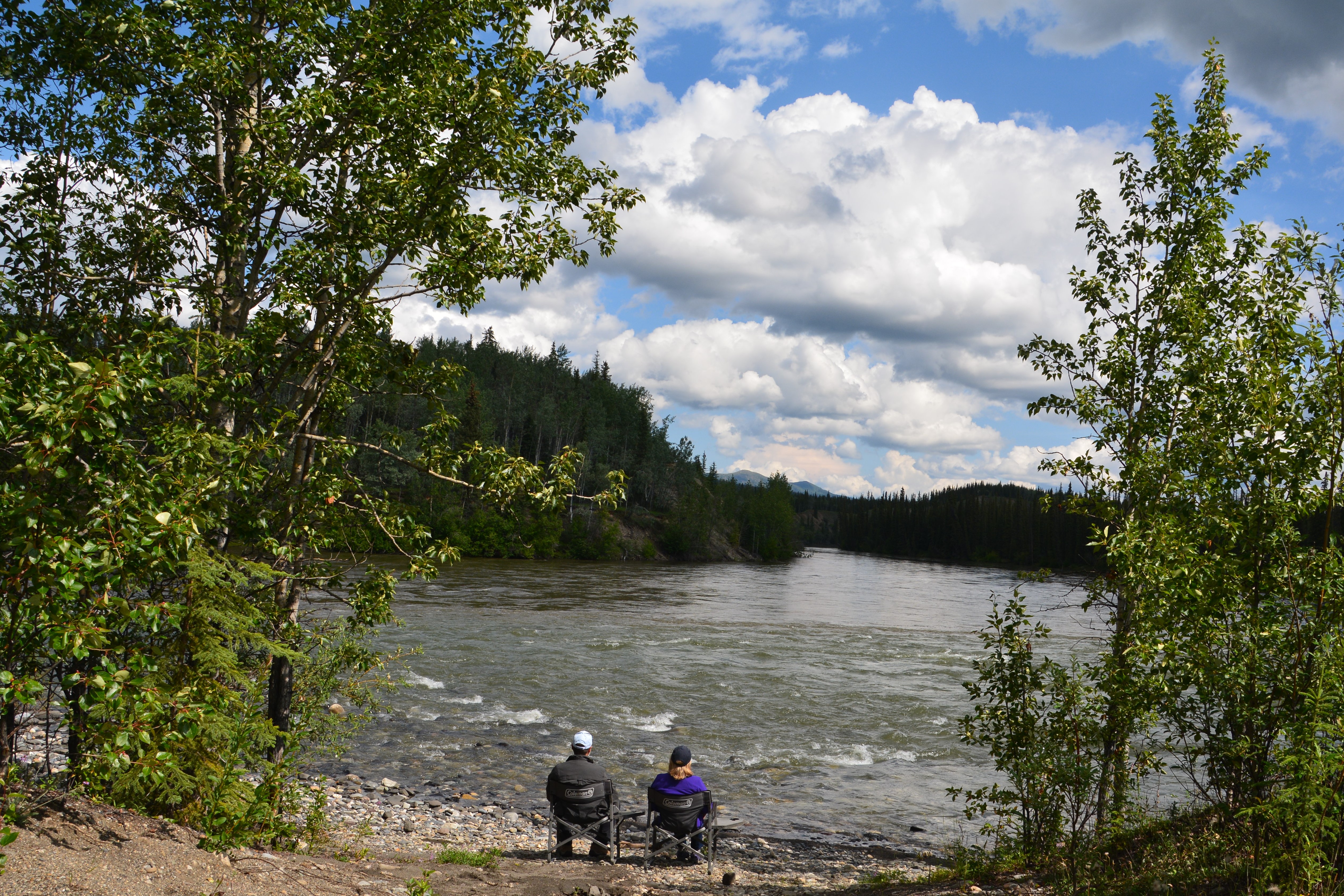 The Yukon is wide and fast moving but these five finger rapids tested the old paddle steamers during the gold rush days
