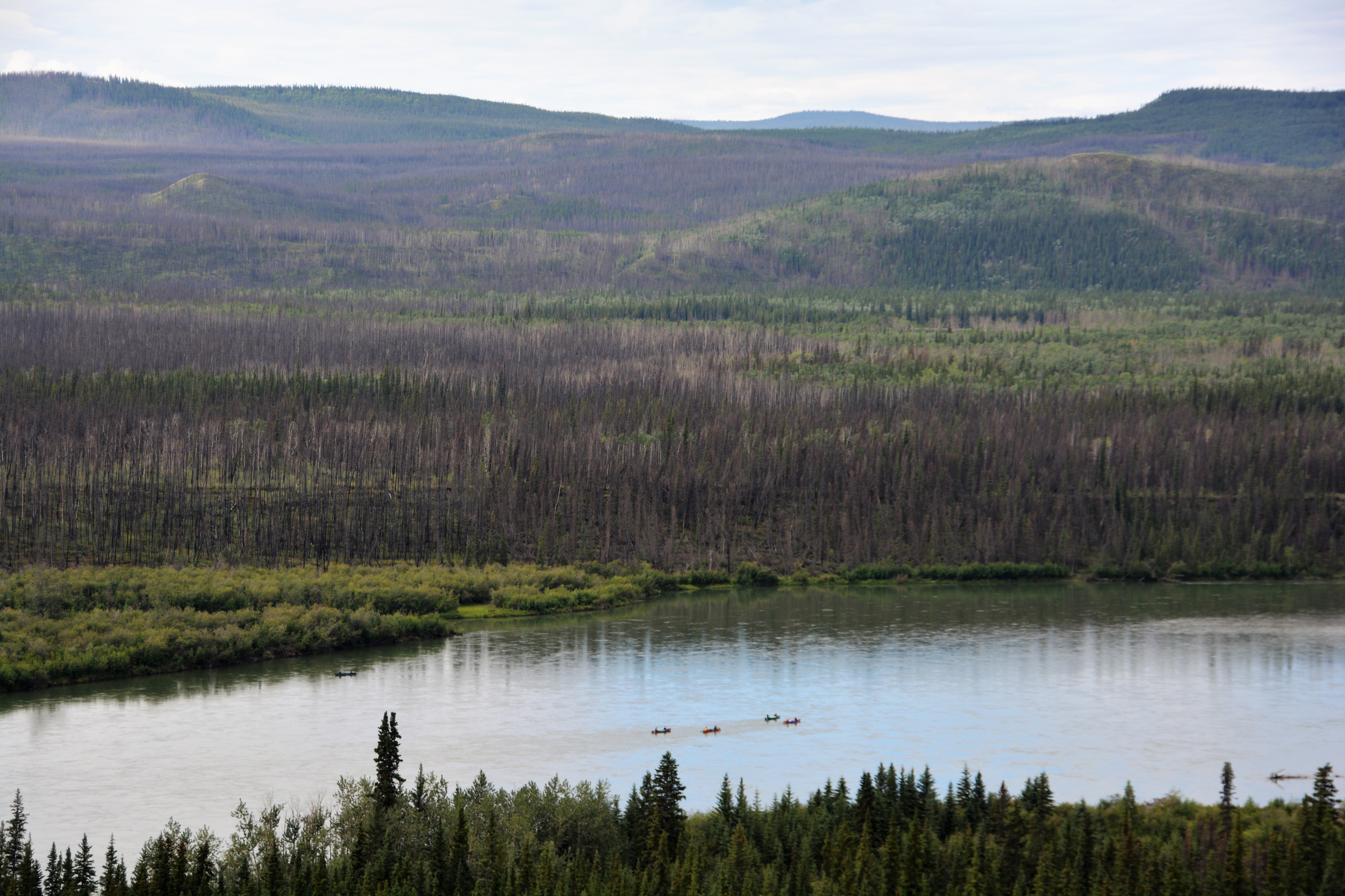 As we followed the Yukon for a few hours we spotted a couple of groups of canoeists, heavily loaded with equipment and food, re-enacting this epic journey from 120 years ago. It was a beautiful scene watching them from high on the ridge float down this majestic river, truly amazing.