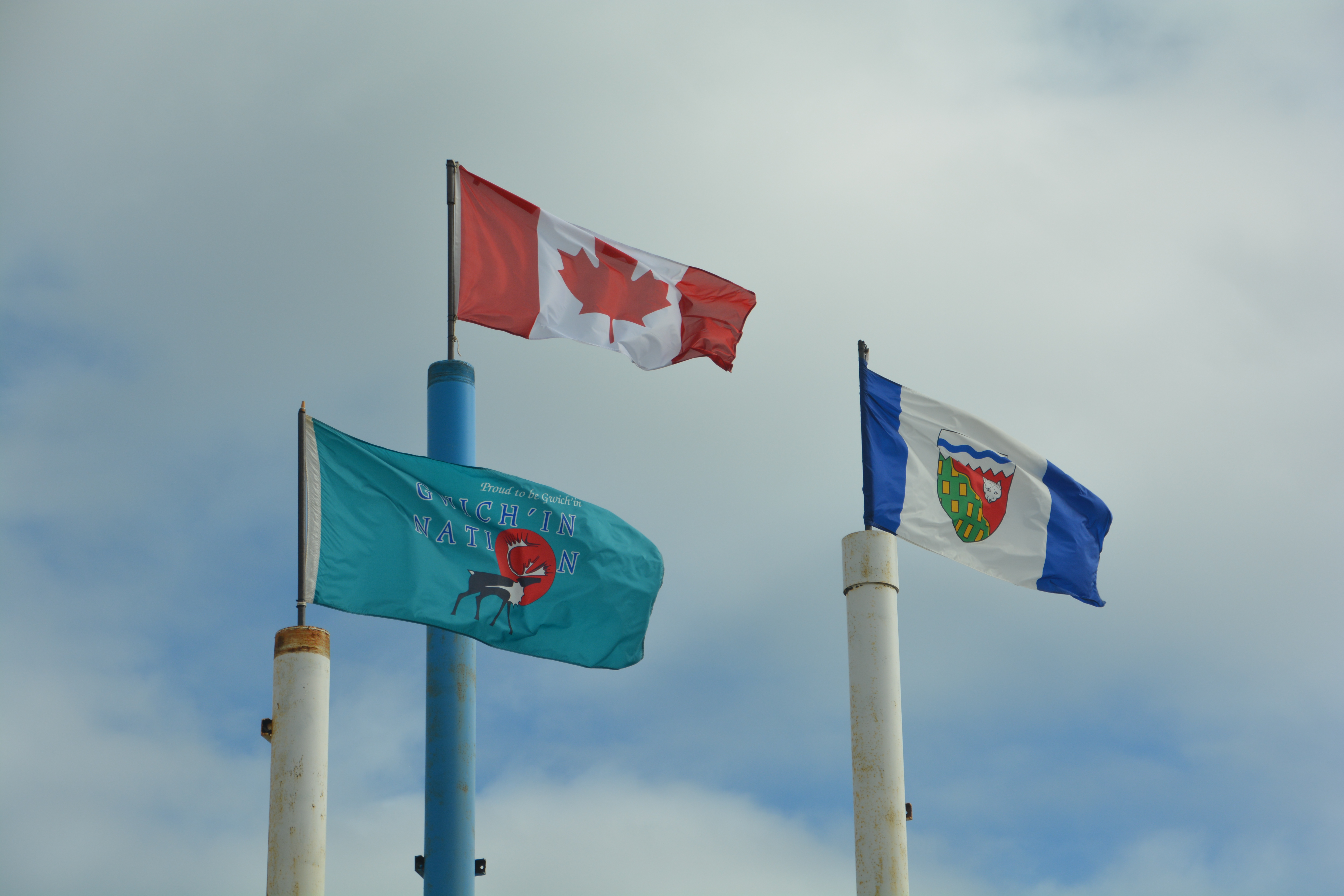 The local First Nation people called Gwitch’in have their own flag that flies with the province and national flags